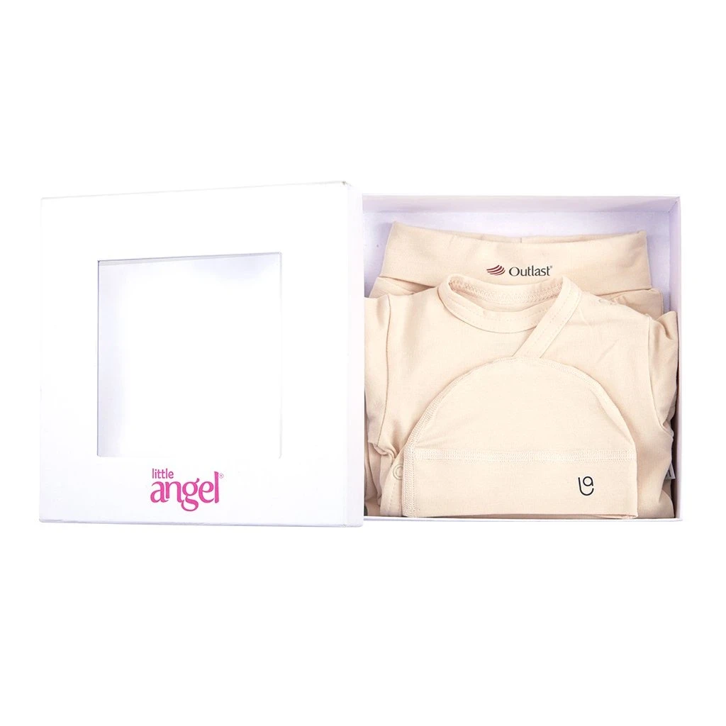 Novorodenecká sada Outlast® je dokonalým kúskom z našej kolekcie. Sada pre novorodencov je 3-dielna a balená do špeciálnej darčekovej krabičky. Obsahuje zavinovacie body, polodupačky a čiapku. Sadu určite ocenia mamička, ktorá hľadá set do pôrodnice, avšak je perfektnou voľbou aj ako dizajnový a krásny darček.