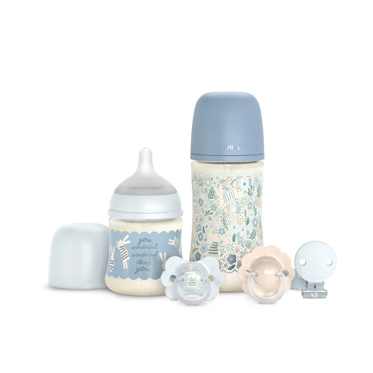 Suavinex je prémiová španielska značka, ktorá sa zameriava na starostlivosť o bábätká a moderné rodičovstvo. Preslávila sa kvalitnými cumlíkmi, fľašami a doplnkami, ktoré spájajú bezpečnosť, funkčnosť a elegantný dizajn. Produkty Suavinex sú vyvíjané v spolupráci s odborníkmi, aby podporovali zdravý vývoj dieťaťa a pohodlie pri každodenných rituáloch. Značka kladie dôraz na estetiku a ponúka širokú paletu štýlových kolekcií pre malých aj veľkých. Suavinex je obľúbenou voľbou rodičov, ktorí hľadajú spoľahlivé, krásne a premyslené produkty.