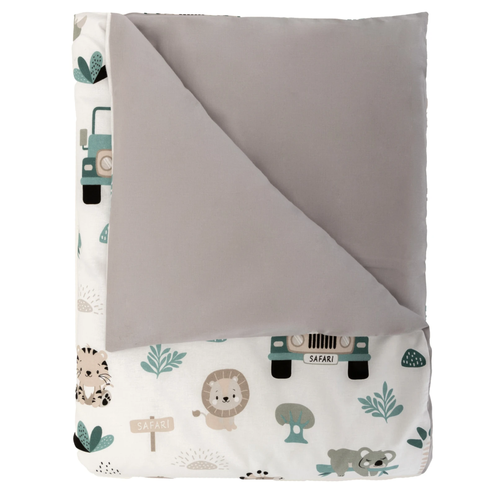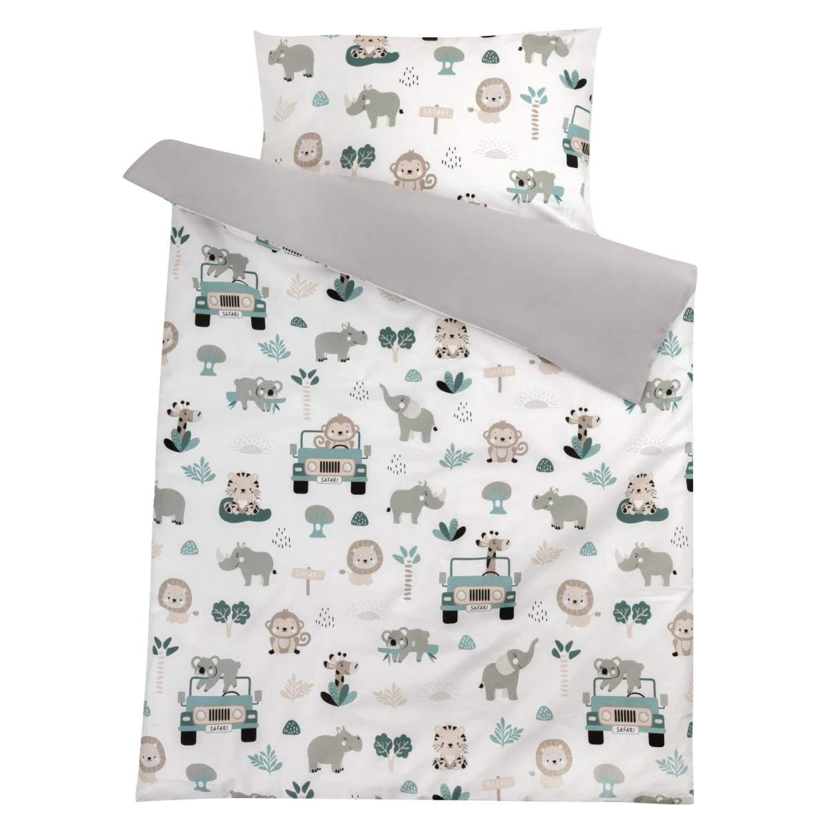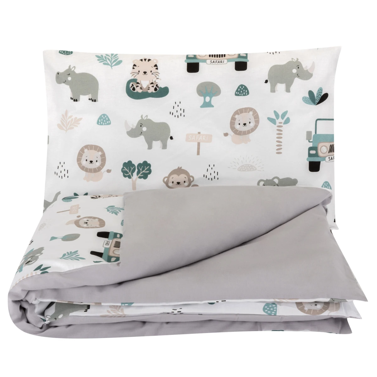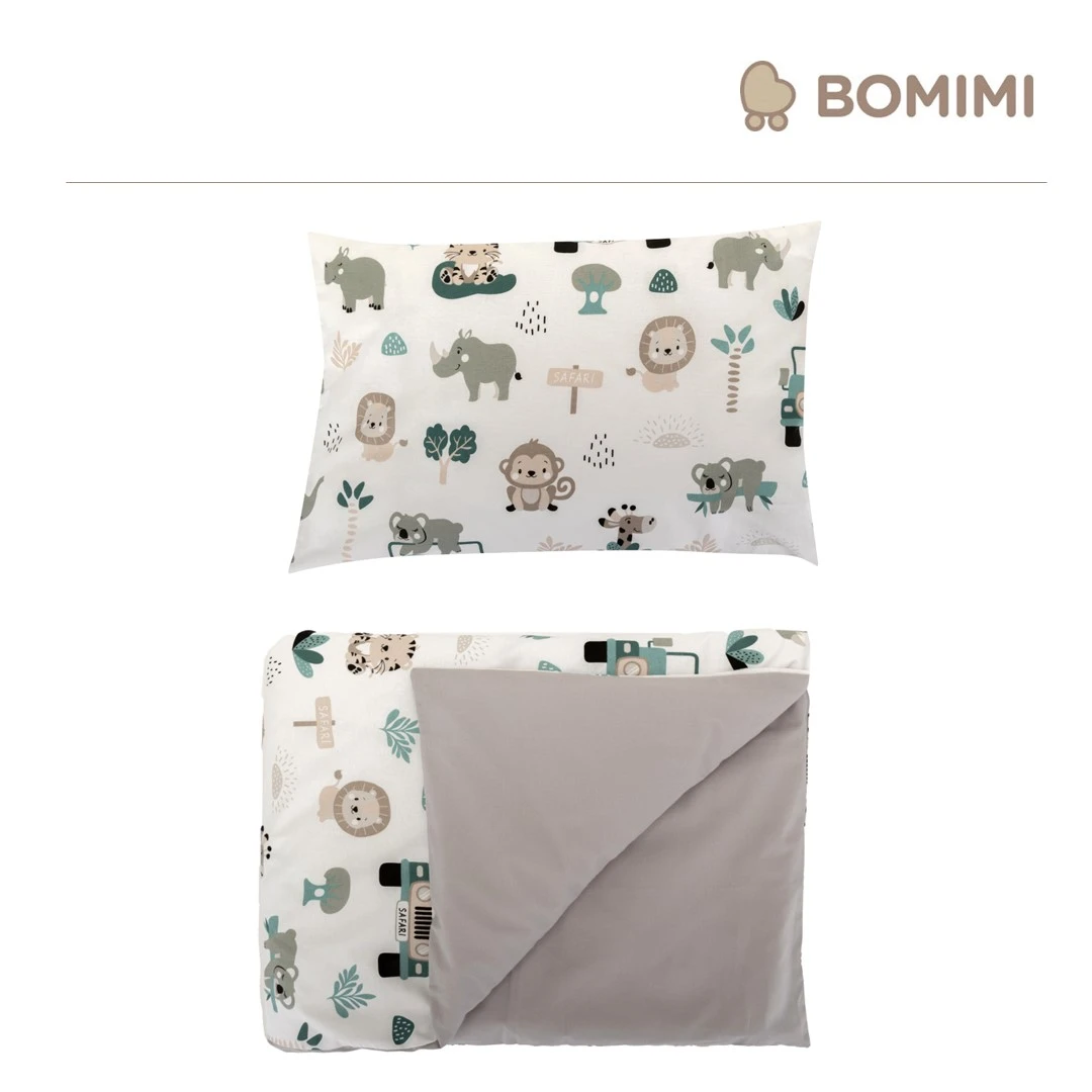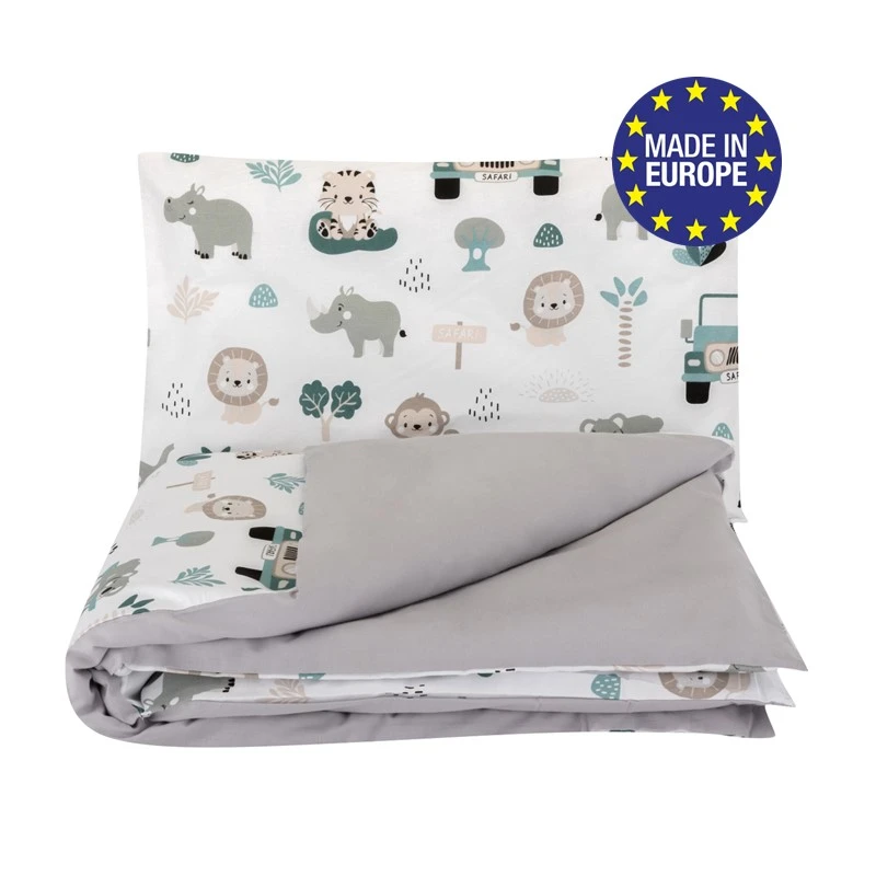 Obliečky 120x90 cm (perinka + vankúšik) Pojazdná zoo/sivá Bomimi