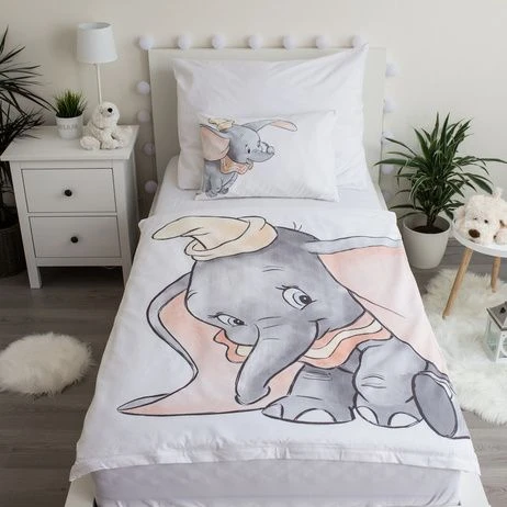 Posteľná súprava Dumbo grey je určená pre menšiu detskú postieľku a vďaka obľúbenému motívu vytvorí v detskej izbičke jemnú a pokojnú atmosféru pre spánok.