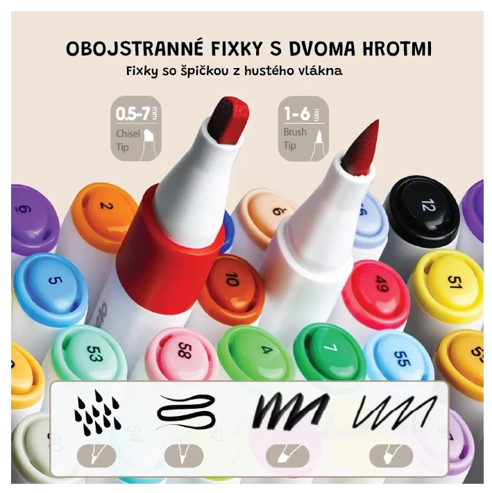- Pevný uzáver, ktorý fixky udrží dlhodobo mokré a pripravené na ďalšie dobrodružstvo