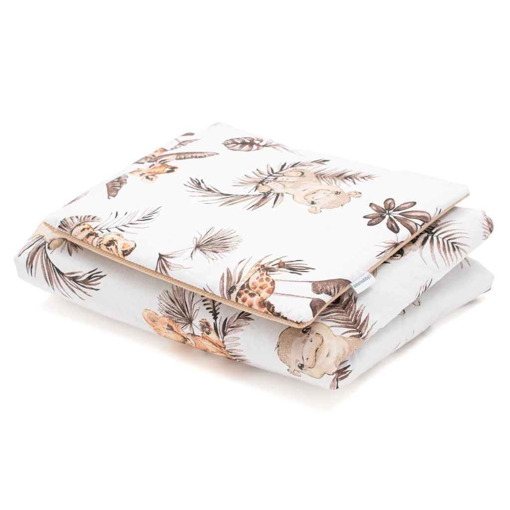 Bavlnený materiál s modernou potlačou zaistí pohodlie bábätku a Velvet materiál je veľmi príjemný na dotyk a po dlhú dobu si zachováva svoj pôvodný tvar. Je ideálny ako pre bábätká od narodenia, tak aj pre väčšie deti ako deka na hranie, do kočíka alebo na von. Set obsahuje vankúšik a prikrývku.