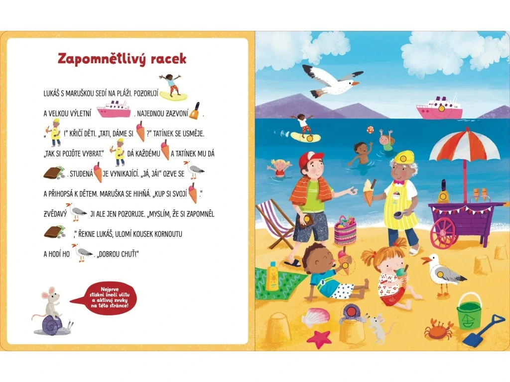 Zábavné čítanie s obrázkami a zvukmi. Sedem príbehov s veľkými písmenami, obrázkami a zvukovými tlačidlami pomôže deťom s čítaním aj porozumením.