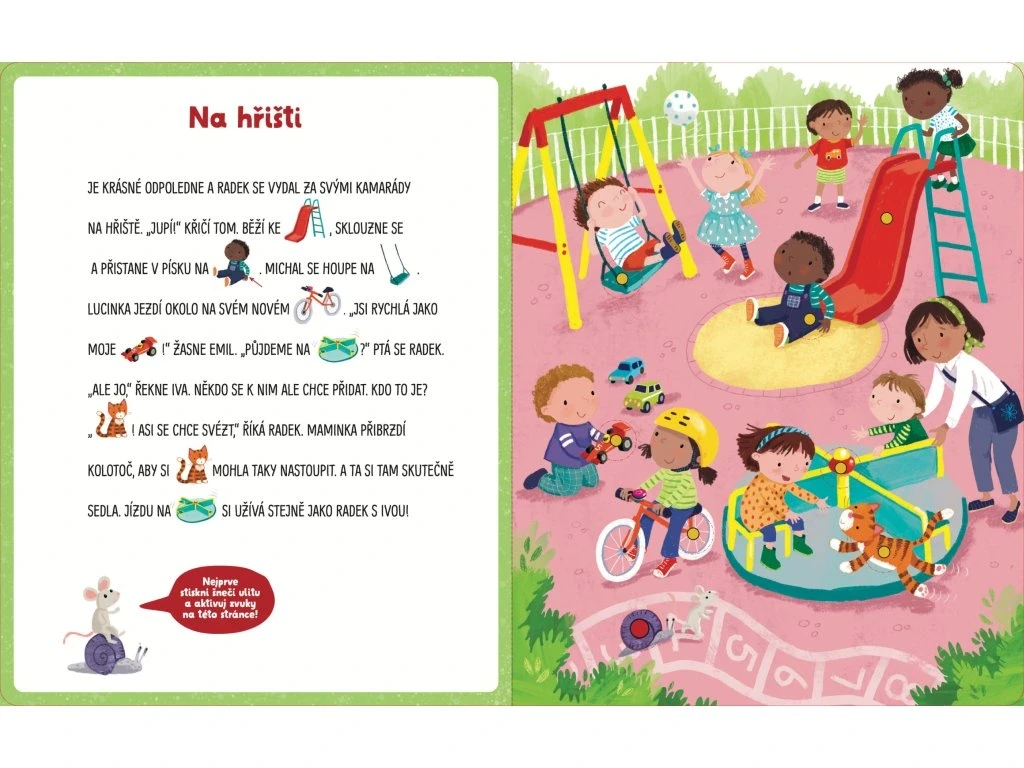Zábavné obrázkové čítanie pre najmenších čitateľov. V knihe nájdete sedem krátkych a veselých príbehov, ktoré deti ľahko pochopia a obľúbia si ich. Každý text je písaný veľkými písmenami a doplnený obrázkami namiesto niektorých slov, takže sa môžu aktívne zapojiť do čítania a príbeh spoluvytvárať. Navyše každú scénu oživujú zvuky - stačí stlačiť tlačidlo a nechať príbeh zaznieť. Kniha podporuje porozumenie, slovnú zásobu, čitateľské zručnosti aj zmysel pre humor a je ideálna pre spoločné čítanie rodičov s deťmi.