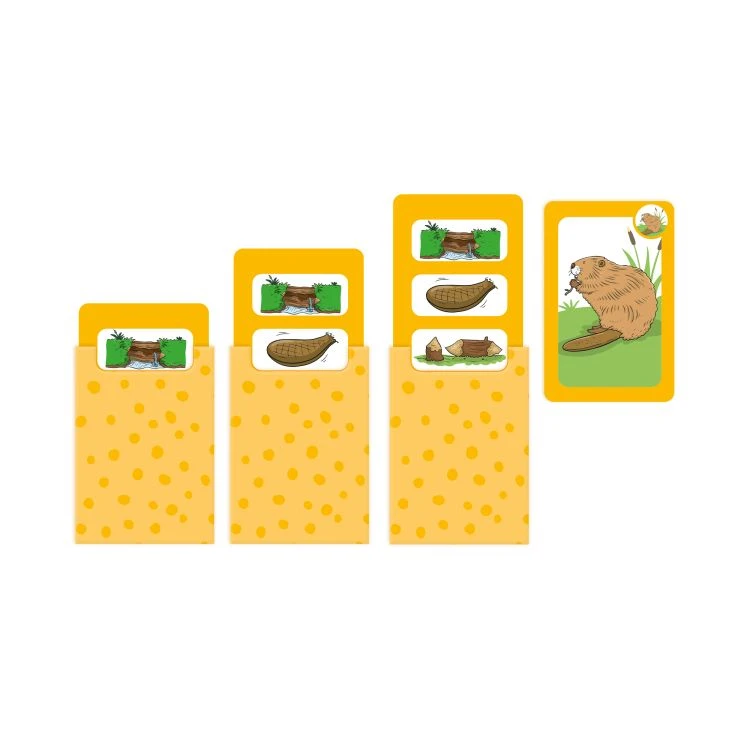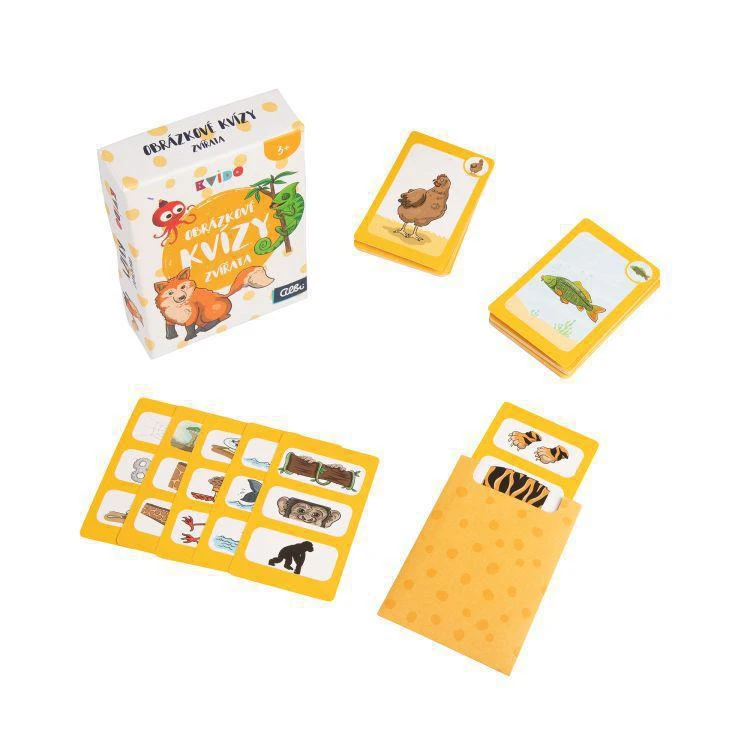 Obrázkové kvízy obsahujú 50 ilustrovaných kariet. Na jednej strane karty postupne odkryjete až 3 obrázkové nápovedy, podľa ktorých uhádnete skryté zviera