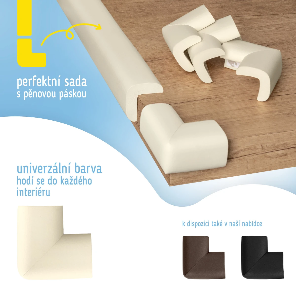 Penové chrániče rohov nábytku sú bezpečné pre deti a po použití sa ľahko odstraňujú. Sú k dispozícii v rôznych farbách, čo vám umožňuje zladiť ochranu s vašim typom nábytku a výzdobou interiéru.