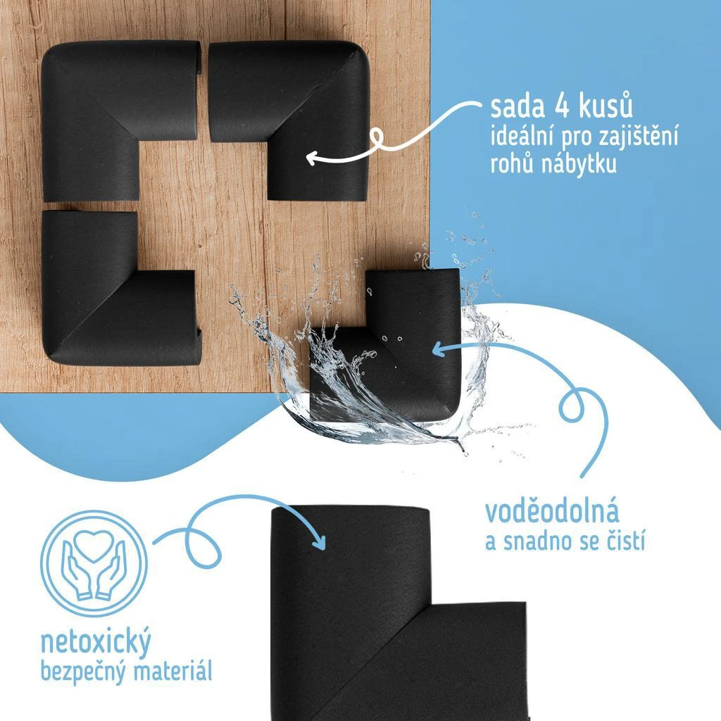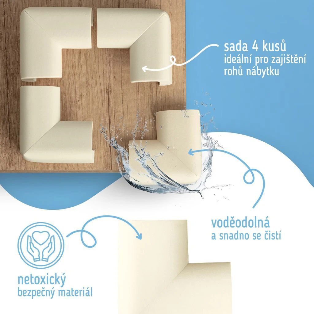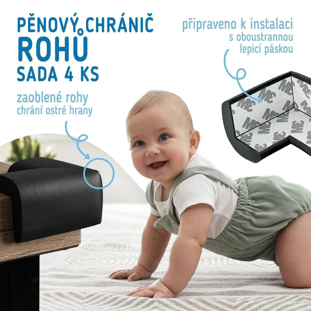Ochranné rohy sú široko používaný bezpečnostný prvok vďaka použitému materiálu a mäkkosti. Možno ich použiť na ochranu dosiek stolov, skríň, schodov a všetkých ďalších prvkov, ktoré majú ostré hrany a rohy a mohli by tak predstavovať bezpečnostné riziko pre vaše deti.