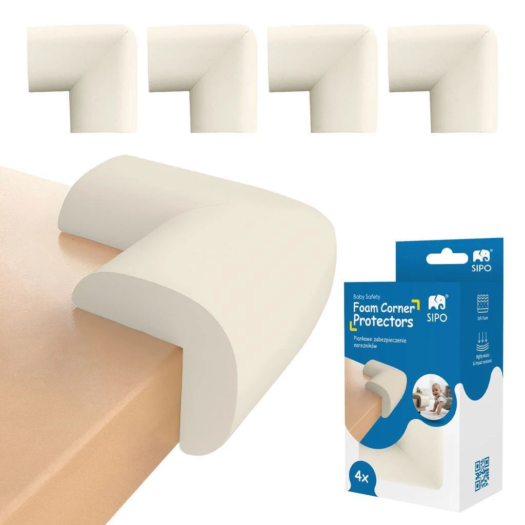 Sipo sada 4ks penovej ochrany rohov a hrán pre bezpečnosť vašich detí. Penové chrániče rohov nábytku chránia deti pred nárazmi do ostrých rohov a hrán. Sú vyrobené z mäkkej, pružnej peny, ktorá absorbuje silu nárazu, čím znižuje riziko zranenia.