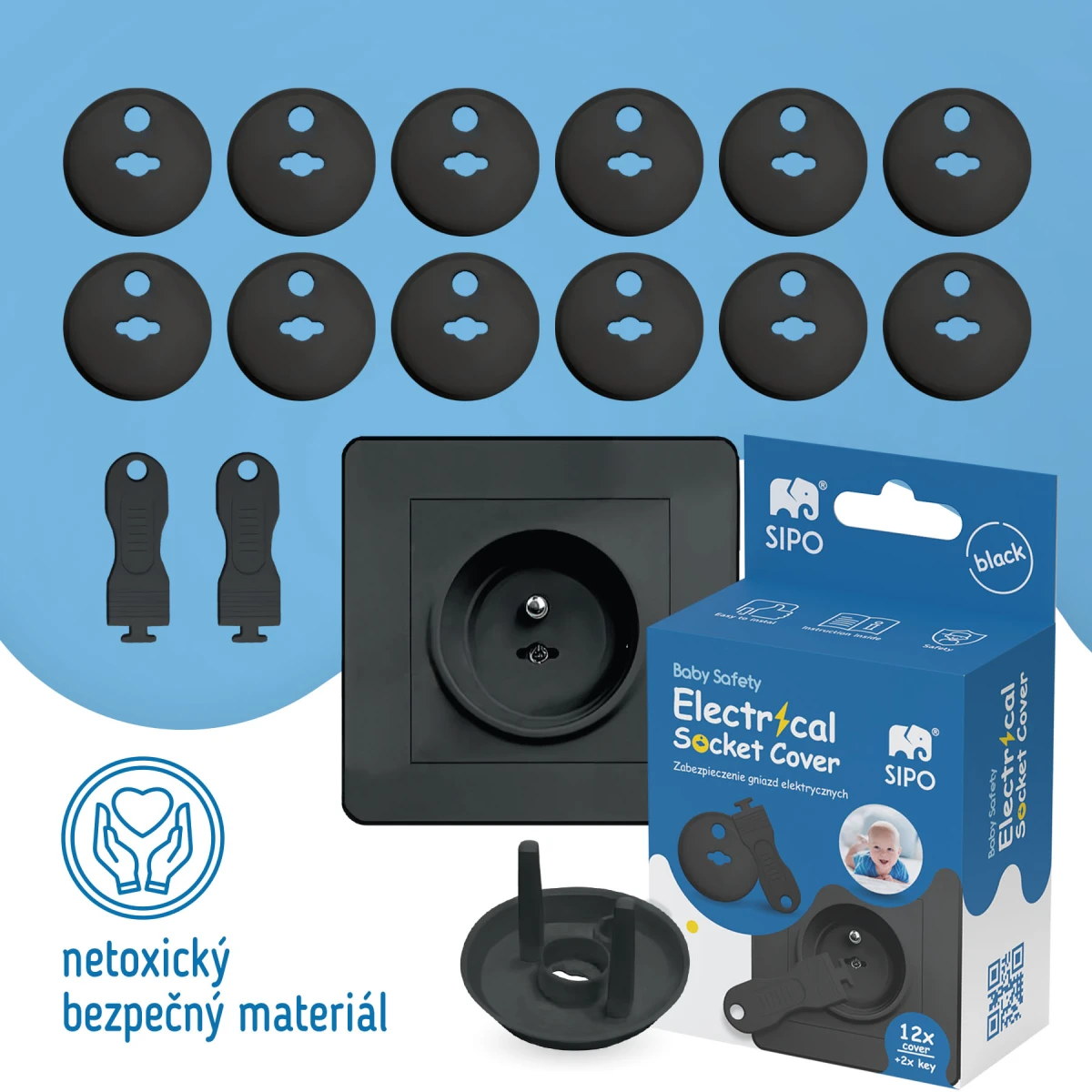 Ochranné kryty na elektrické zásuvky set 12 ks + 2x kľúče Sipo