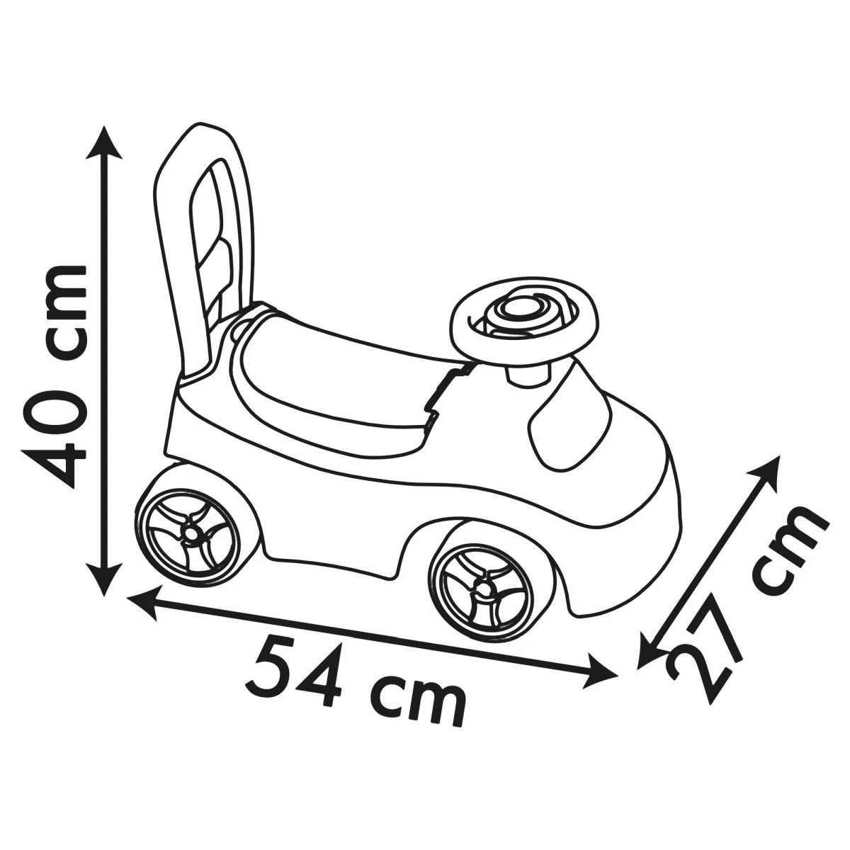 Stabilné odrážadlo v tvare auta s motívmi Stitch. 2 v 1 slúži ako chodítko aj odrážadlo. Nechýba volant, opierka chrbta, pod výklopným sedadlom schránka na nevyhnutné veci malého cestovateľa.