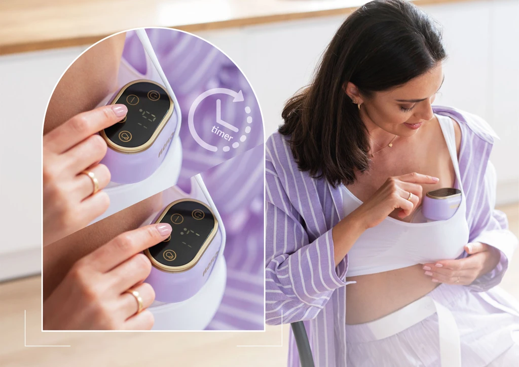 Prenosná odsávačka pastelovej farby je úplne bezdrôtová, má prehľadný dotykový ovládací panel a veľký objem, kam sa zmestí až 210 ml mlieka. Odsávačka mlieka funguje na základe troch fáz s 8 úrovňami nastavenia. Má anatomický prsný štít v tvare prsníka, ktorý je možné zmenšiť z 24 mm na 20 mm.