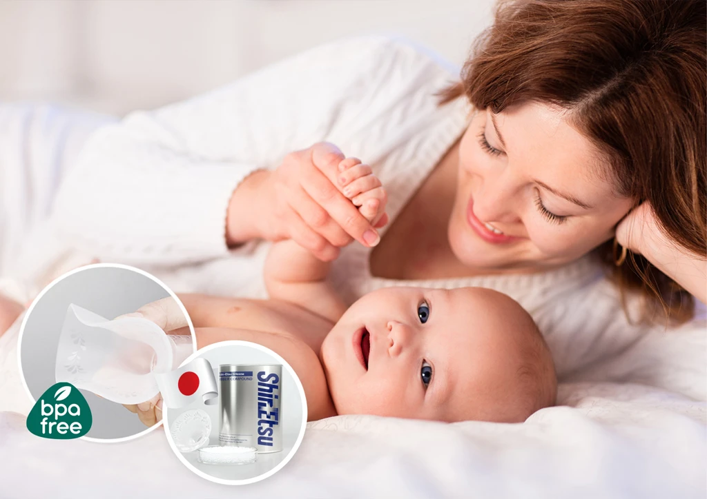 - Prsné štíty z japonského silikónu - príjemné na dotyk, znižujú nepohodlie a uľahčujú odsávanie