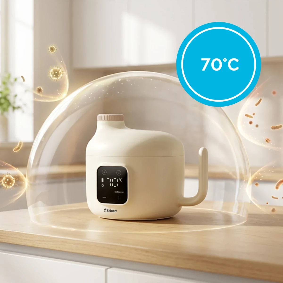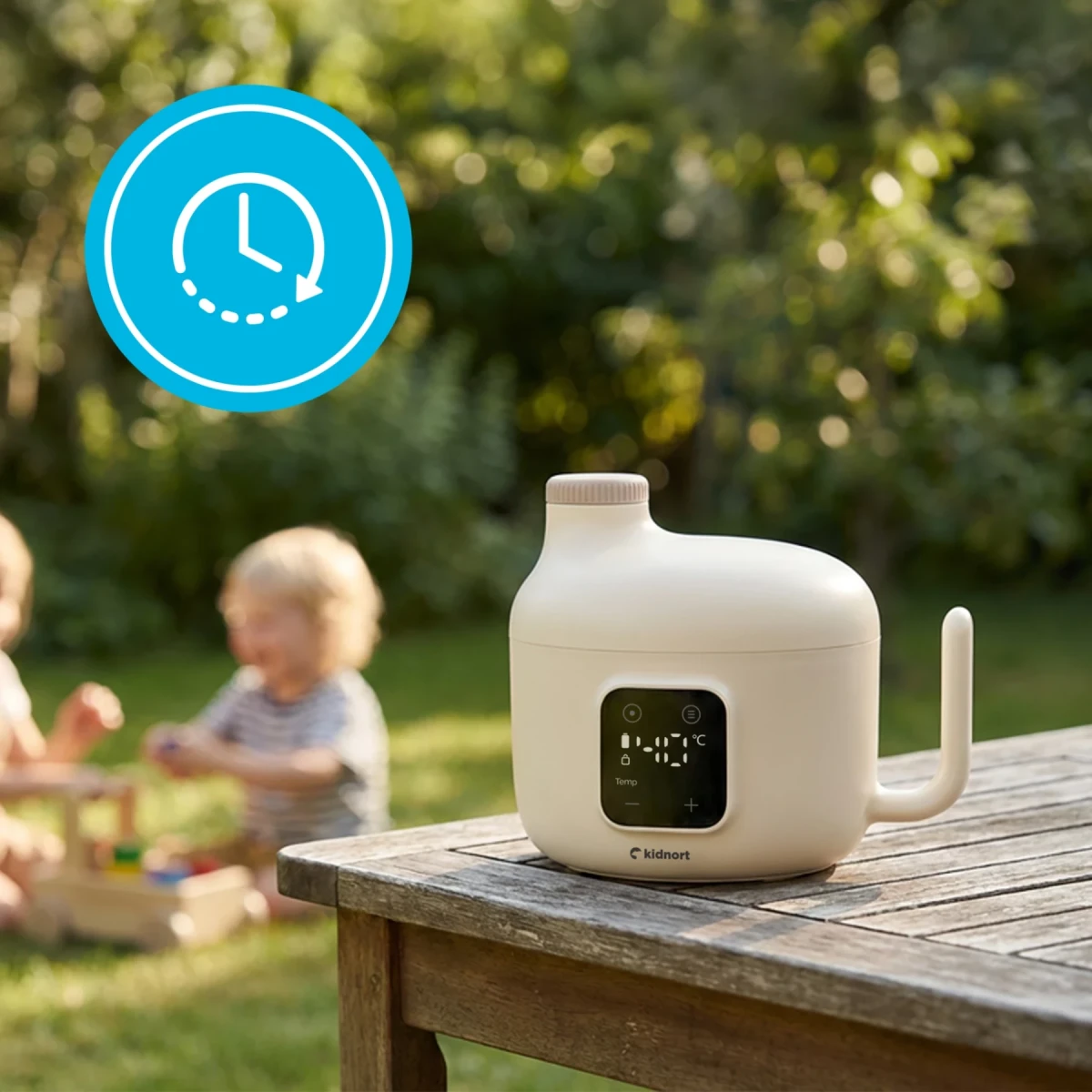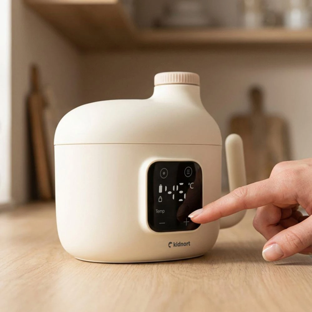 Ohrievač detskej stravy Kidnort pripraví pokrm či nápoj presne a bezpečne – doma aj na cestách. Vďaka presnému nastaveniu teploty, sterilizačnému režimu a intuitívnemu dotykovému ovládaniu je praktický, spoľahlivý a vždy pripravený pre vaše dieťa.