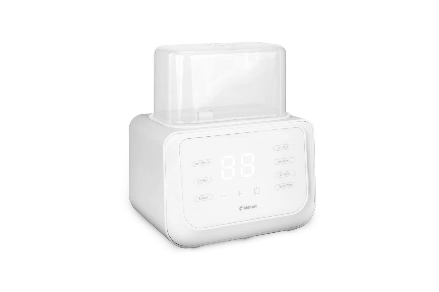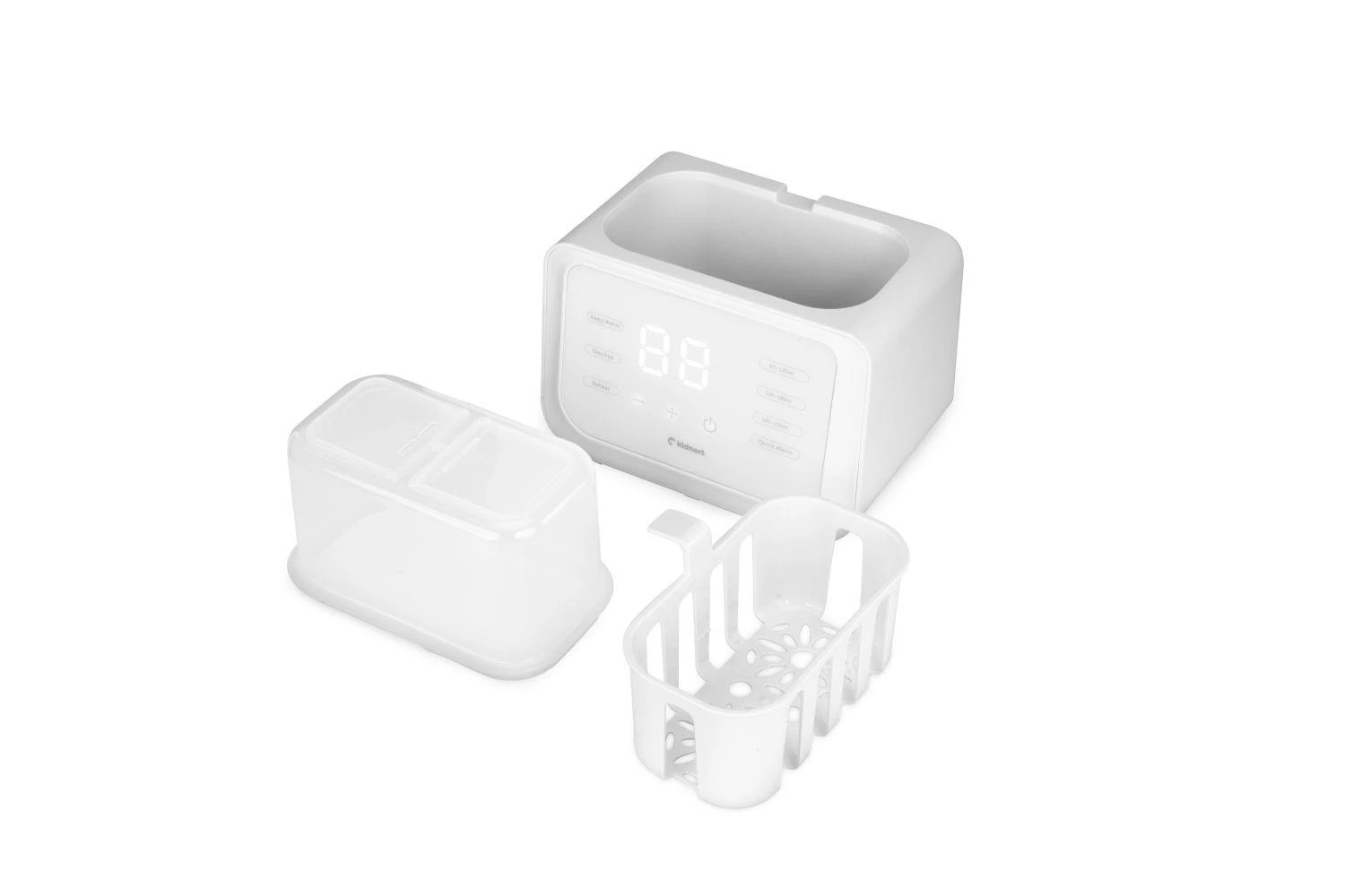 Funkcia sterilizácie pri 90 °C umožňuje rýchlo a efektívne odstrániť baktérie z fľaštičiek, hryzátok, cumlíkov, častí odsávačky mlieka a ďalšieho detského príslušenstva. Stačí pridať 50–70 ml vody, vložiť košík a umiestniť doň fľaštičku alebo iné príslušenstvo, všetko prikryť viečkom a zapnúť režim sterilizácie. Košík umožňuje pohodlné vyberanie liekoviek alebo príslušenstva. Toto praktické riešenie vám dáva istotu, že všetko, čo príde do styku s detskou výživou, je hygienicky čisté a bezpečné.