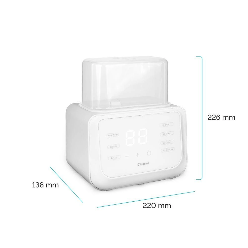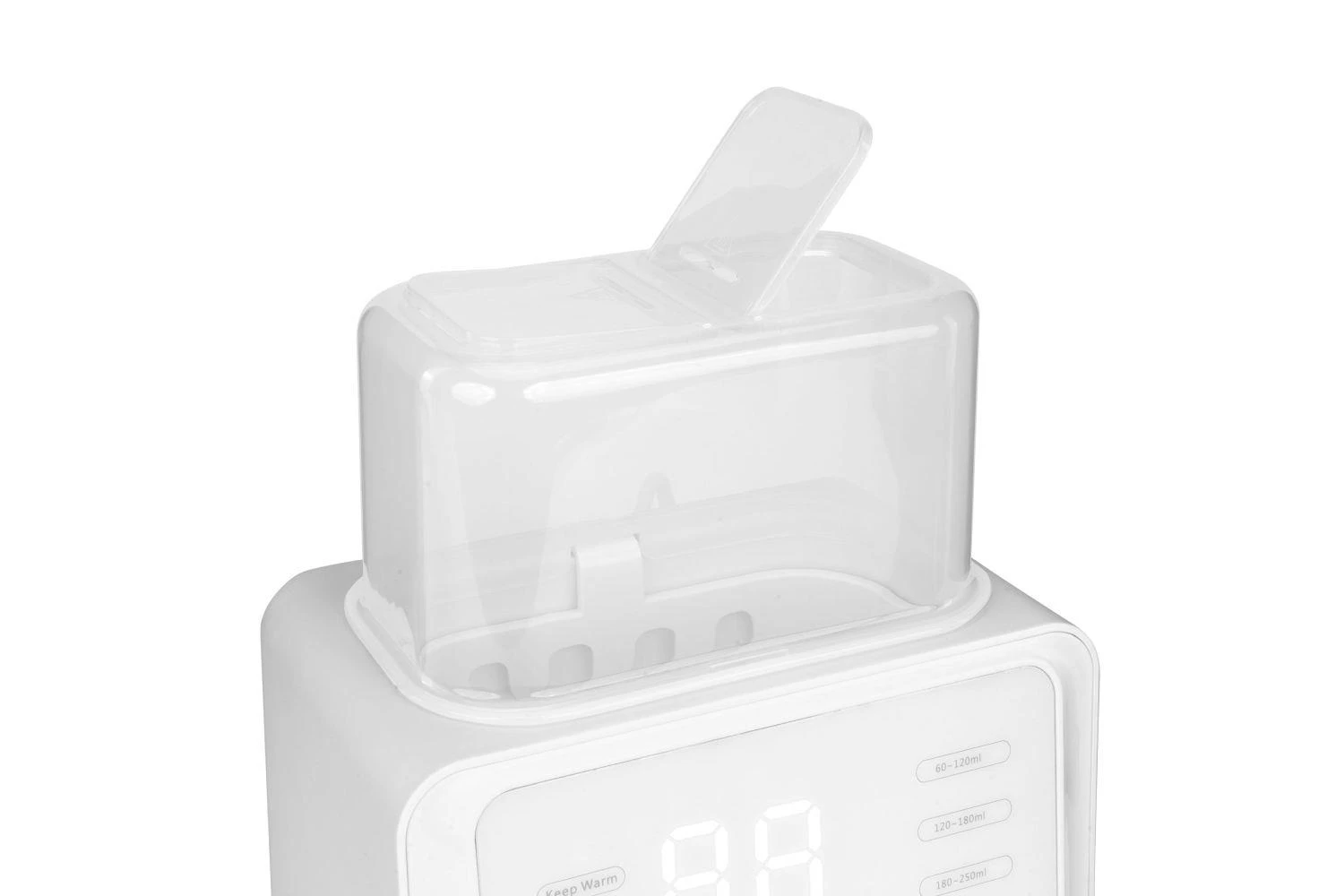 Praktický a bezpečný ohrievač určený pre rodičov, ktorí chcú rýchlo a rovnomerne ohriať mlieko alebo jedlo pre svoje dieťa. Vďaka priestrannej komore (15 cm x 8 cm priestor pre fľaše) môžete pohodlne ohriať dve fľaše alebo fľašu a pohár. Zmestí sa doň fľaše s objemom 60 ml až 250 ml, vyrobené zo skla, plastu alebo silikónu. Vďaka otváraciemu veku je vhodný aj pre vysoké fľaše. Pohodlné pre jedno alebo dve deti, na deň aj na noc.