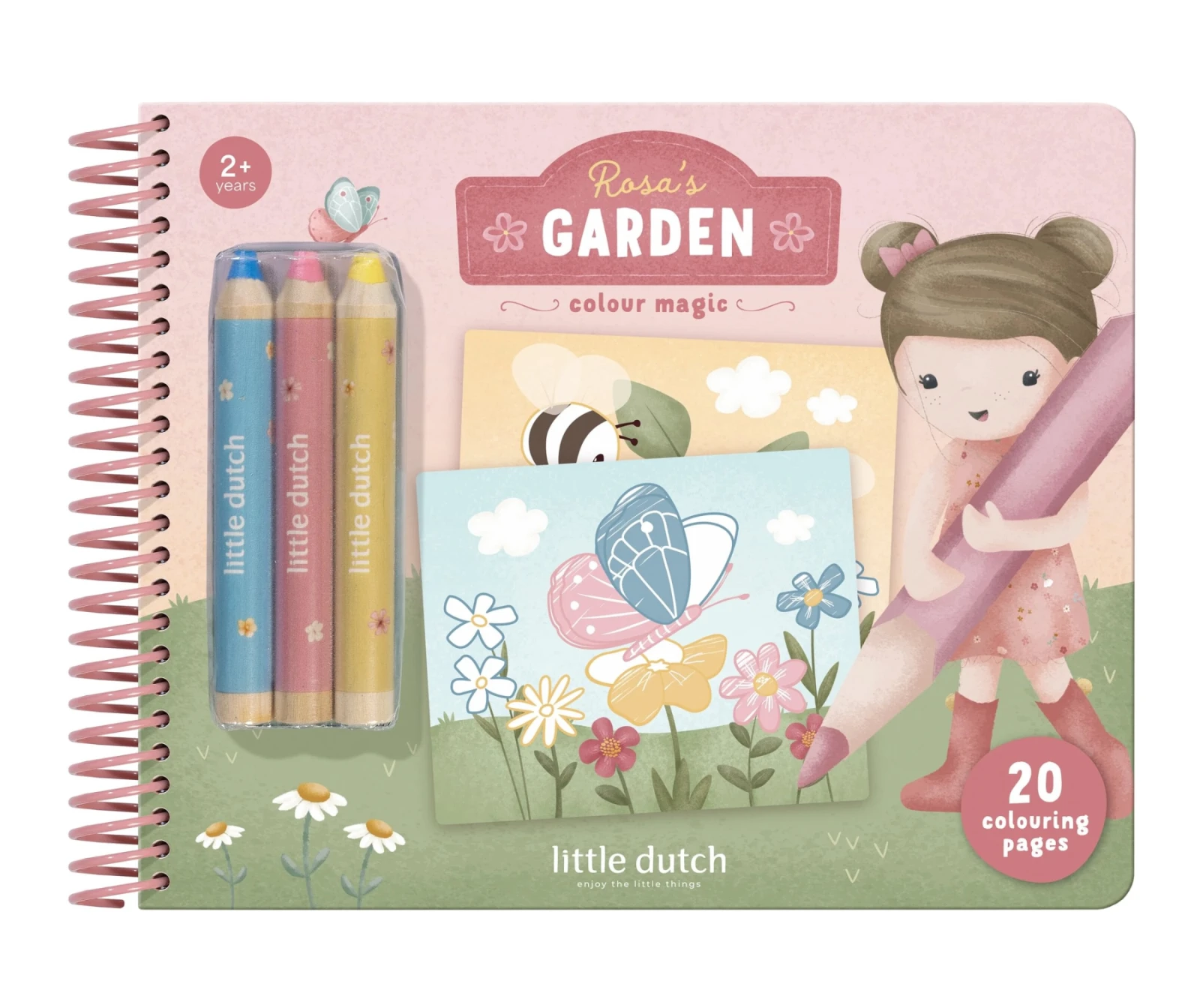 Omaľovánky s pastelkami Záhrada Rosa Little Dutch