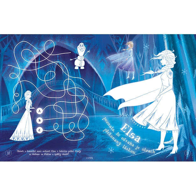 Omaľovánky so svietiacimi samolepkami Ľadové kráľovstvo prinášajú deťom kúzelné chvíle tvorenia s obľúbenými hrdinami.