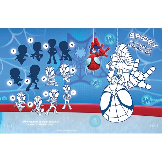 Omaľovánky so svietiacimi samolepkami Spidey sú omaľovánky s 24 farebnými stránkami a svietiacimi samolepkami inšpirovanými populárnym hrdinom, ktoré deťom ponúkajú zábavnú a tvorivú aktivitu.