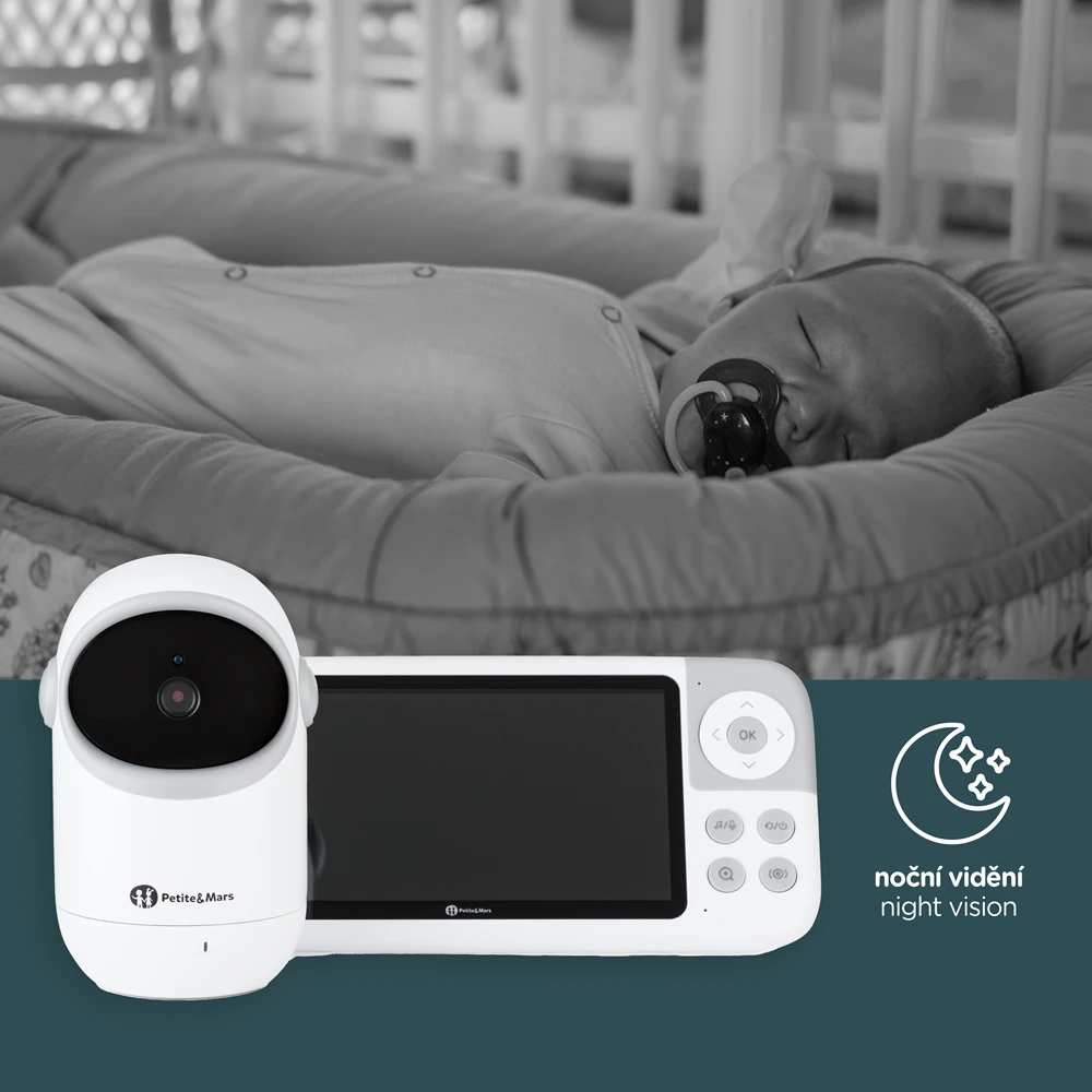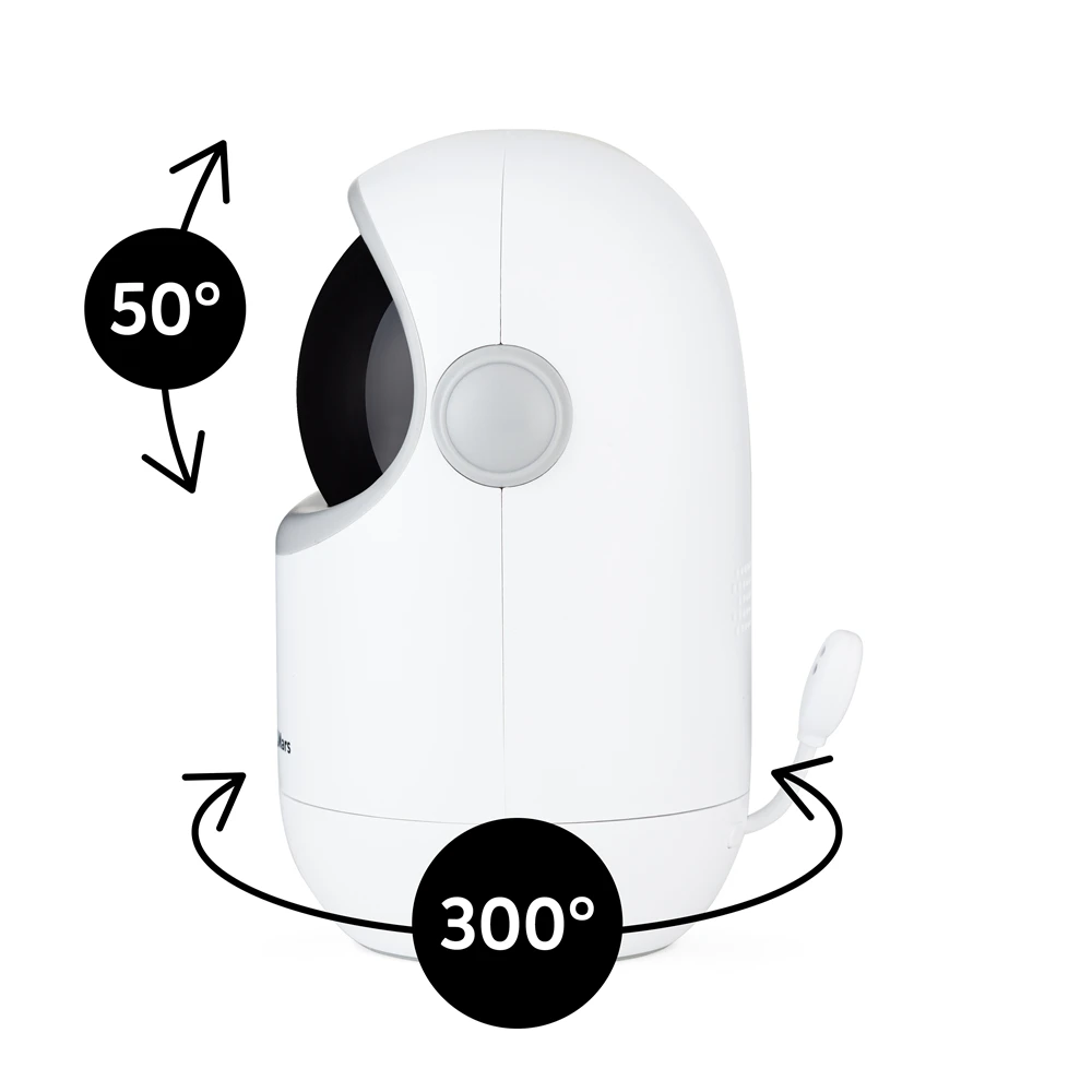 Kamera má široký rozsah pohybu: horizontálne až 300 ° (150 ° vľavo aj vpravo), vertikálne 30 ° hore a 20 ° dole. S uhlom záberu 68 ° tak máte dokonalý prehľad o priestore okolo postieľky či hernej zóny.