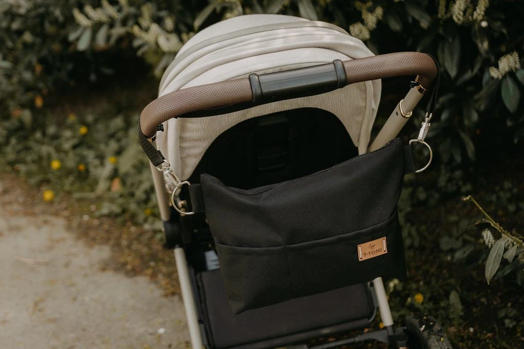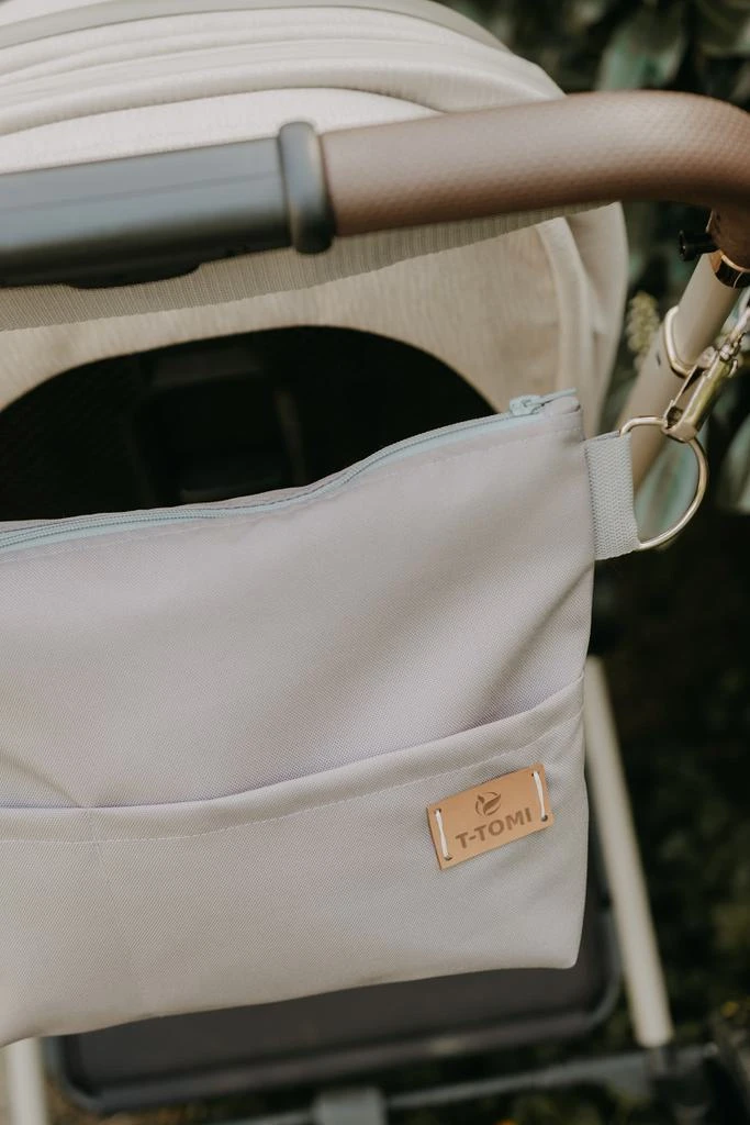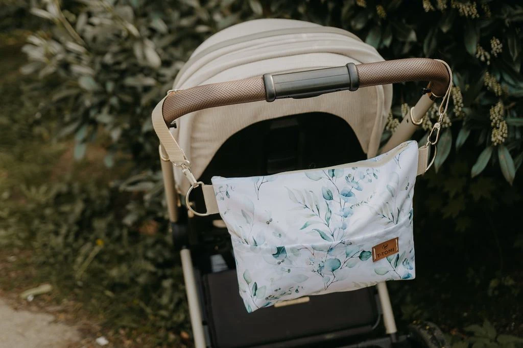 Praktický doplnok pri cestách s bábätkom nielen po meste s kočíkom, ale aj ako každodenný doplnok cez rameno na plienky, prebaľovaciu podložku, cumlík, obrúsky, telefón, slúchadlá, doklady či peňaženku. V hornej časti sú kovové polokrúžky, ktorými si môžete organizér pricvaknúť na klipy. Na prednej časti je vrecko na mobil a vrecko na drobnosti. Vnútri organizéra sú dve praktické vrecká. Uchytenie ku kočíku je veľmi jednoduché a rýchle pomocou kovových karabínok. Popruh cez rameno je možné meniť podľa nálady a potrieb.