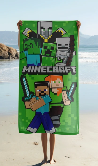 Froté osuška Minecraft „Let's Survive“ je ideálna pre malých i väčších fanúšikov obľúbenej hry a skvele sa hodí k vode, na pláž aj do kúpeľne.