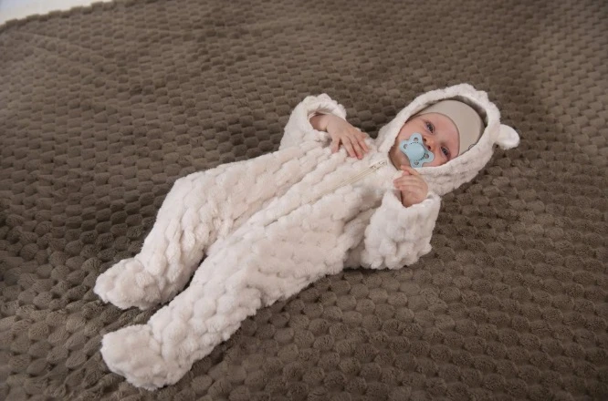 Na koncoch rukávov sú vrecká, ktoré môžete otočiť a schovať do nich ruky dieťaťa.