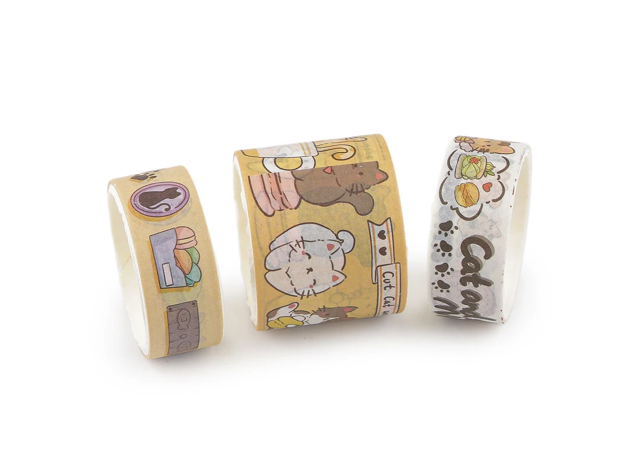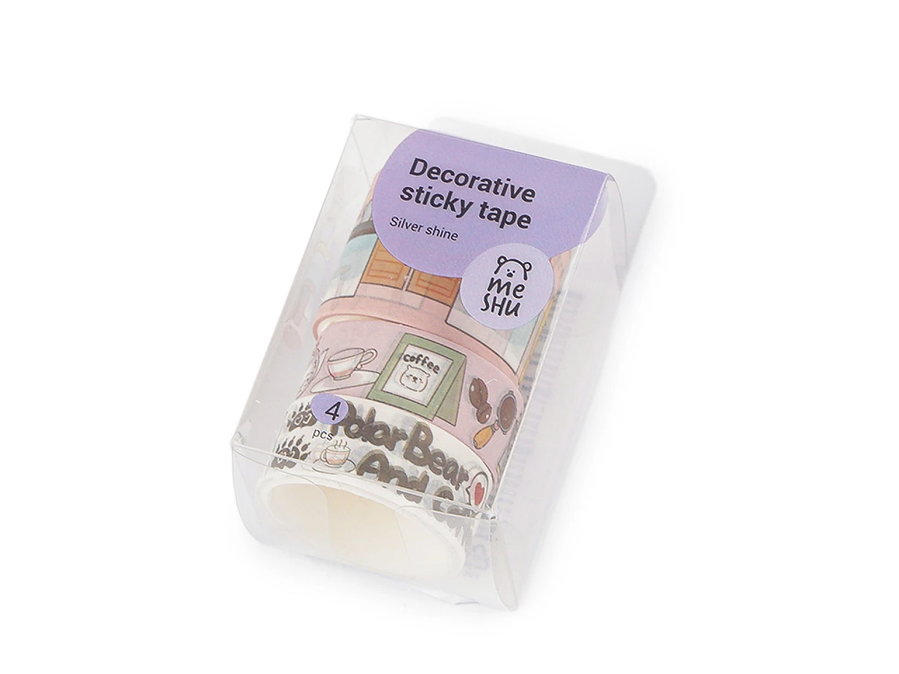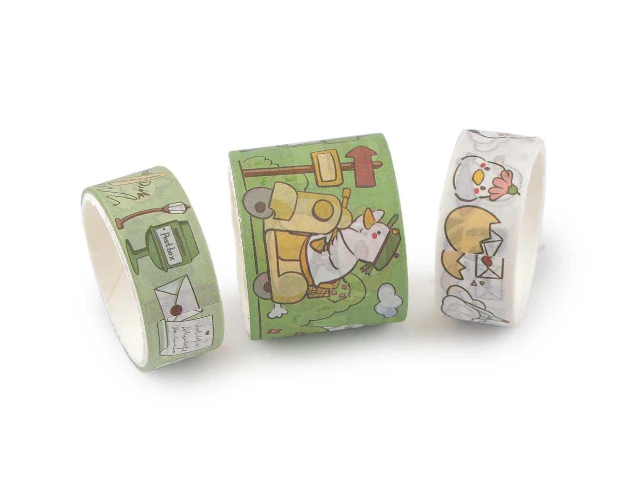 Sada farebných washi lepiacich pások, ktoré môžete lepiť na hladké povrchy ako je drevo, plast, papier, sklo, atď. je ozdobená detskými motívmi.