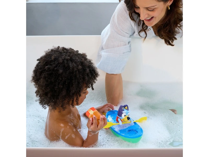 Predstavte si rozžiarené oči vášho dieťaťa, keď prvýkrát uvidia Bluey pádlovať naprieč vaňou! Mechanizmus je geniálne jednoduchý - stačí zatiahnuť za roztomilú rybičku na zadnej časti loďky, natiahnuť šnúrku naplno a... pustiť!