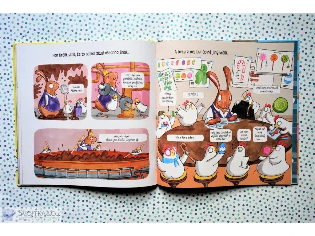 Viete, ako sa vyrábajú čokoládové vajíčka? Možno to nie je tak jednoduché, ako si myslíte! Vtipná komiksová knižka baví originalitou a grafickým spracovaním.