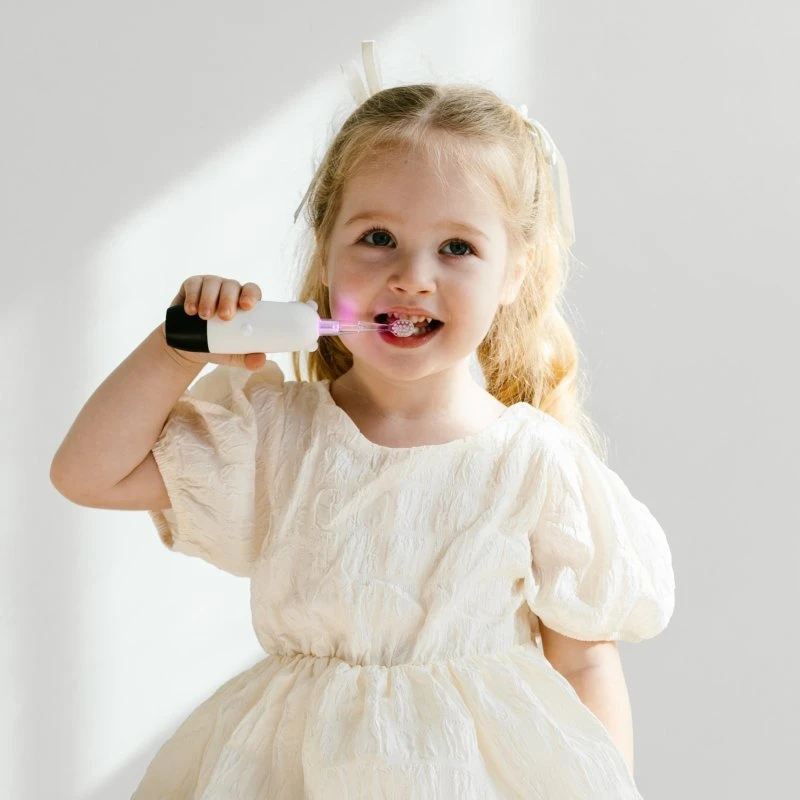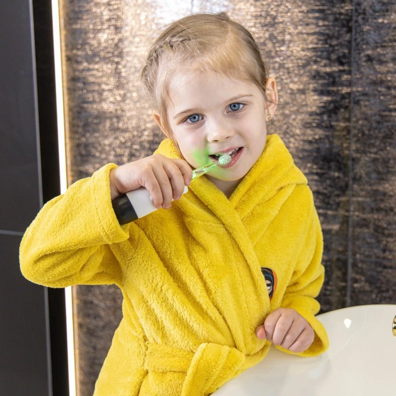 - čistiaca hlava s mäkkými štetinkami je vyrobená z DuPont materiálu, ktorý je pevný a odolný proti opotrebovaniu, má zaoblené konce, chráni ďasná dieťaťa a účinne čistí zuby