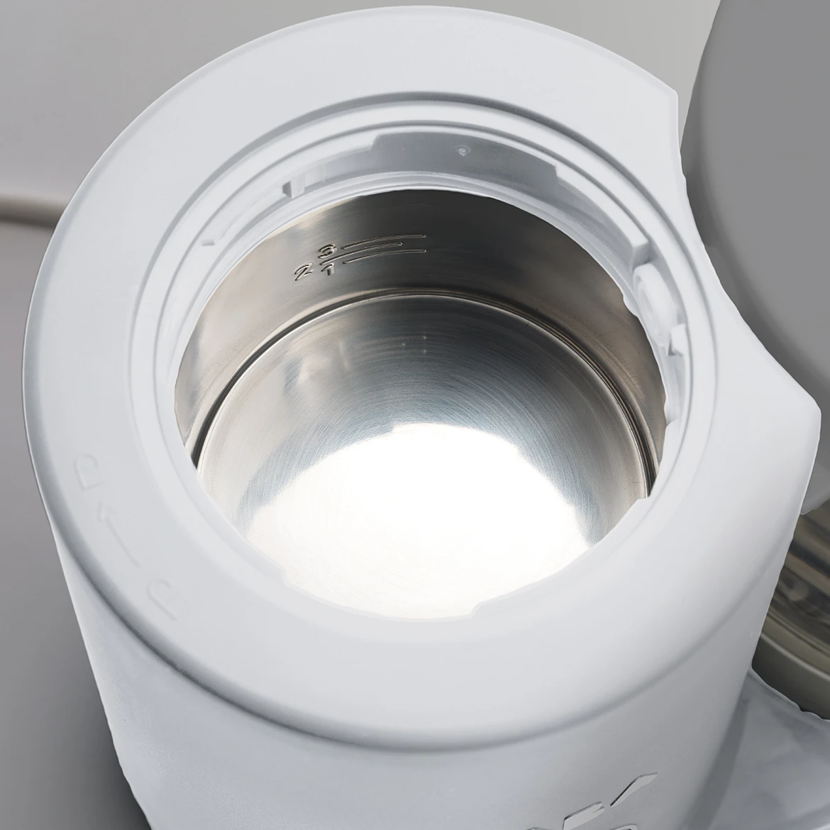 Úplne nový model Babycook ® NEO má sklenenú nádobu s objemom 1250 ml a nerezový vkladací košík s objemom 1000 ml. Nerezový zásobník na vodu s vnútornou ryskou a so širokým vstupným otvorom uľahčuje plnenie vodou aj čistenie zásobníka.