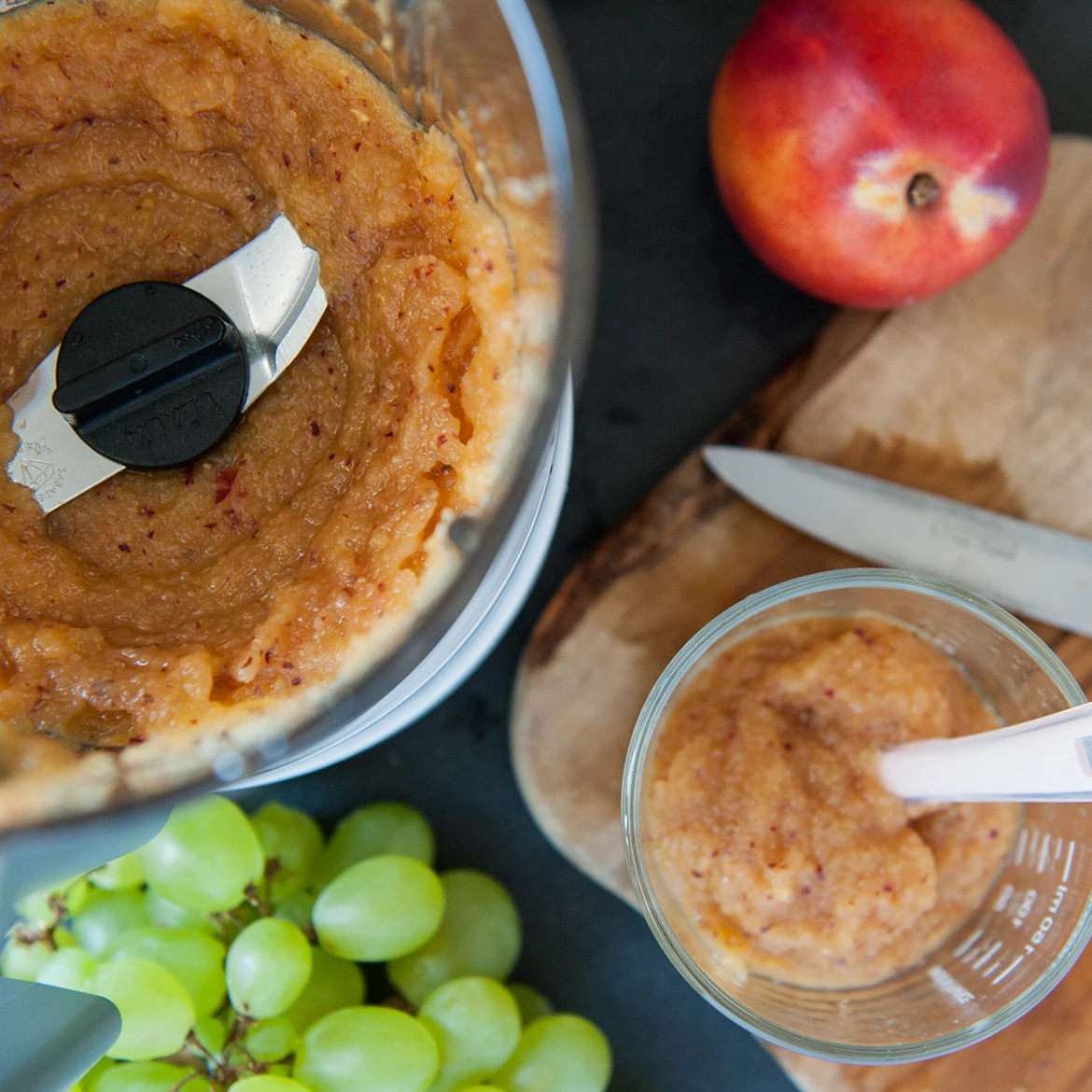 Ak chcete následne pokrm rozmixovať, iba vysypete uvarené suroviny z vkladacieho košíka do priehľadnej hlavnej nádoby a rozmixujete (podľa veku dieťaťa na jemnú hladkú kašu, alebo na hrubšiu štruktúru s kúskami). Keď sa dieťa naučí dobre hrýzť, dá sa Babycook® ďalej používať na zdravé varenie v pare aj bez mixovania.