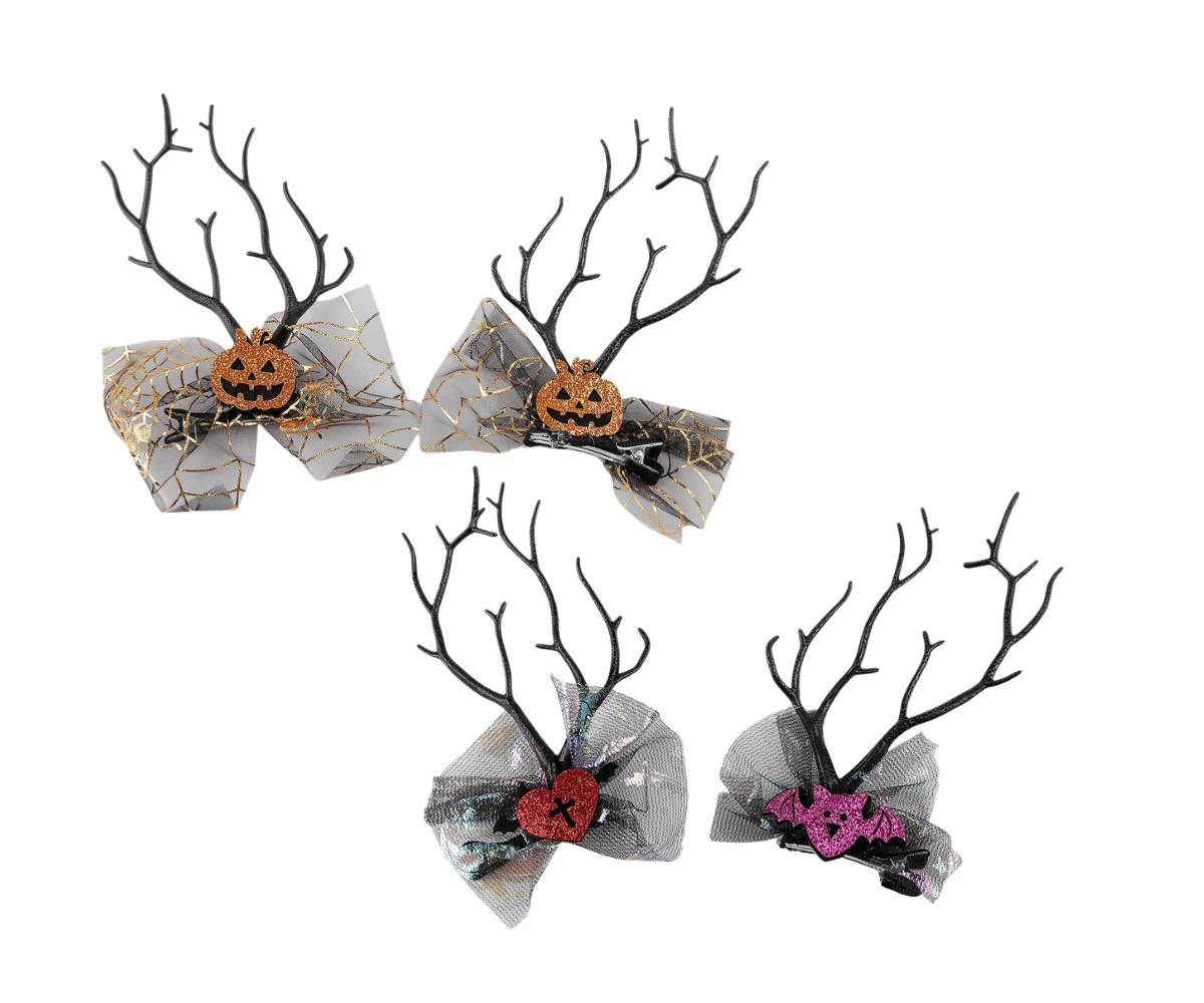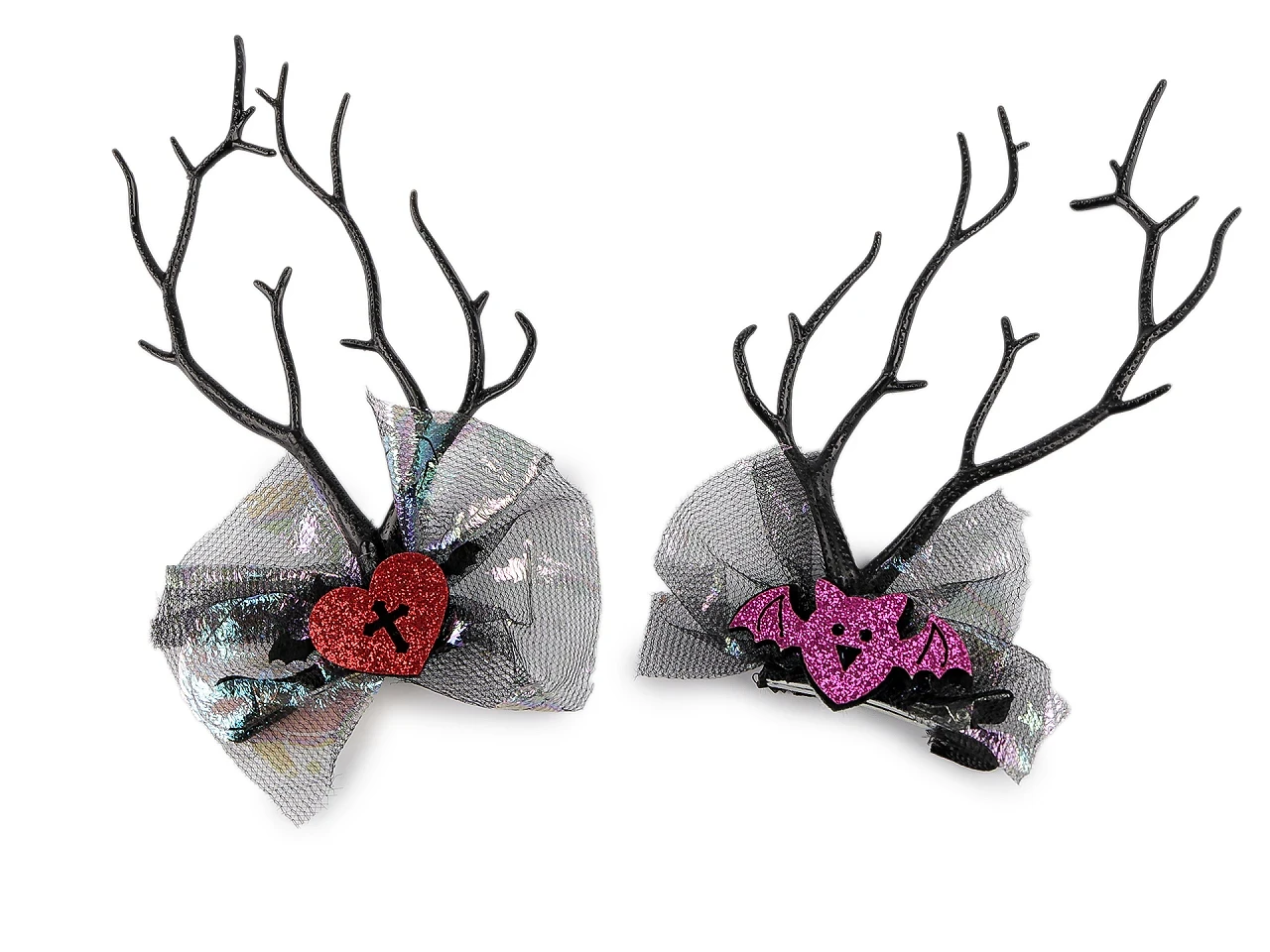 Párty sponky do vlasov v tvare parohov s halloweenskymi ozdobami prinesú do vášho účesu originálny a zábavný prvok.