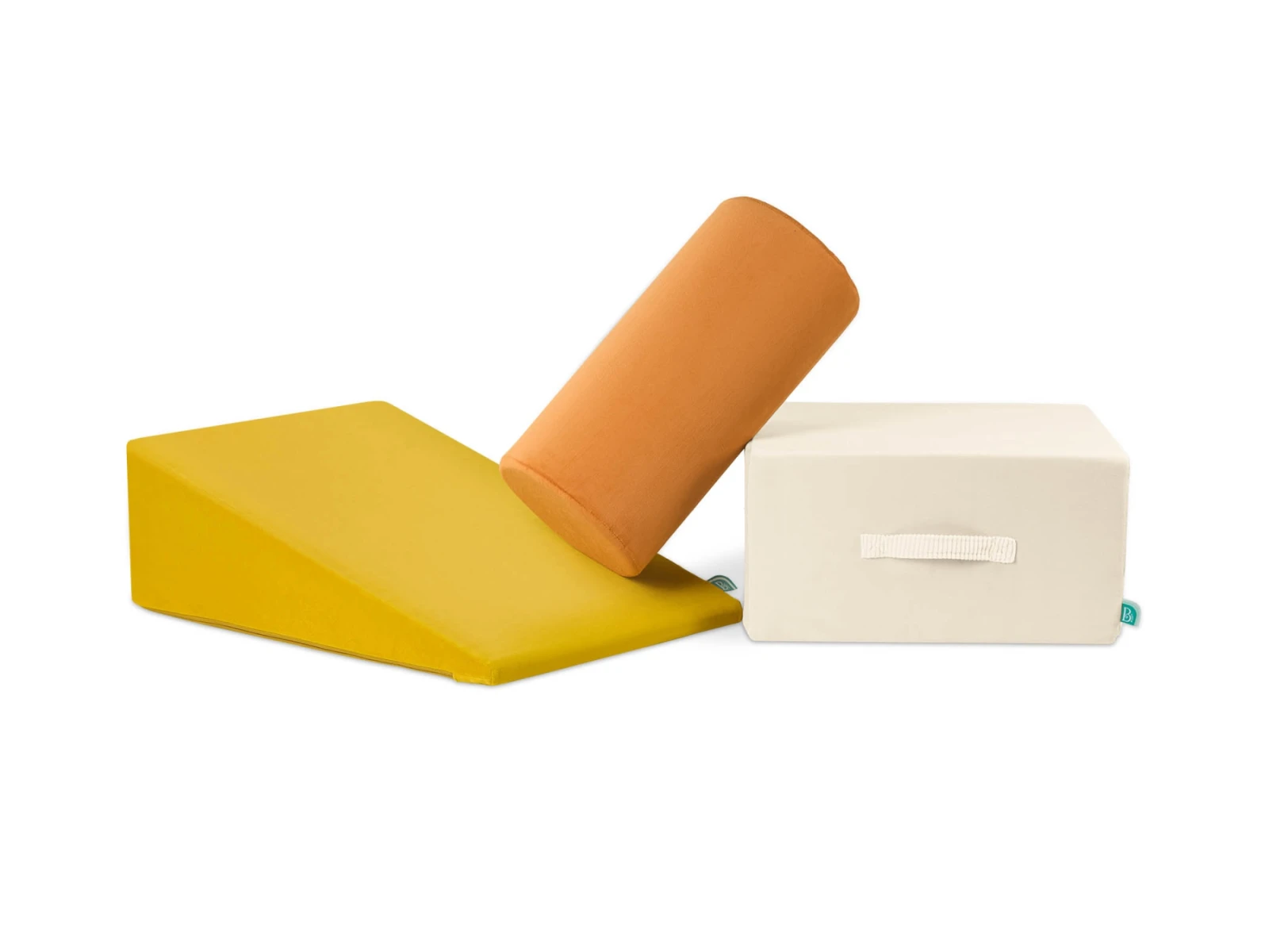 Rozmery: kocka 41 x 41 x 21 cm, rampa 61 x 41 x 21 cm, valec 41 x 21 x 21 cm.