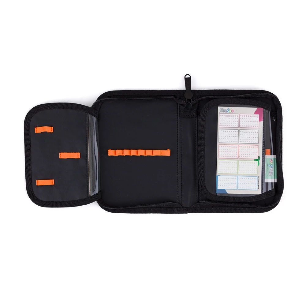 Peračník s jednou priehradkou a dvoma chlopňami ponúka prehľadné usporiadanie školských potrieb a dostatok priestoru pre všetky písacie pomôcky.