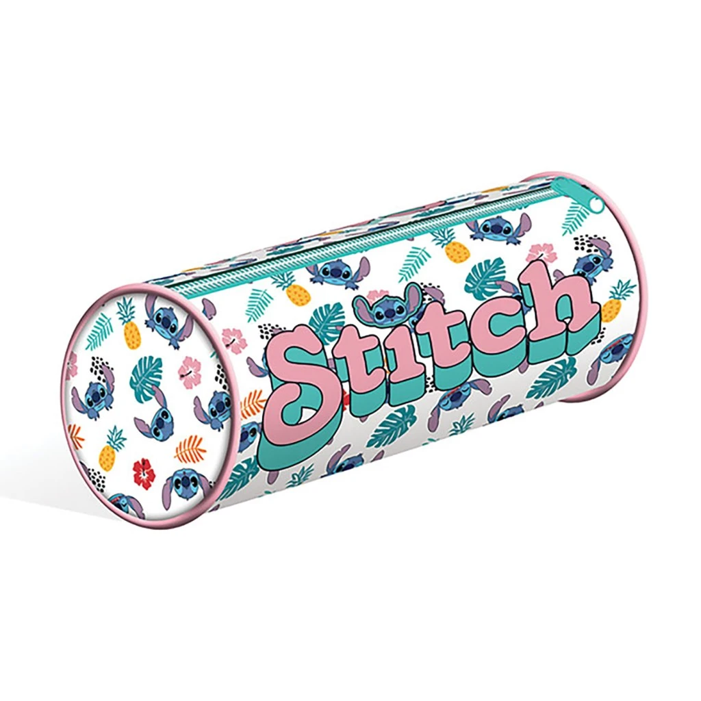 Okrúhly biely peračník s motívom Lilo & Stitch je praktickým a štýlovým doplnkom pre každodenné školské potreby.