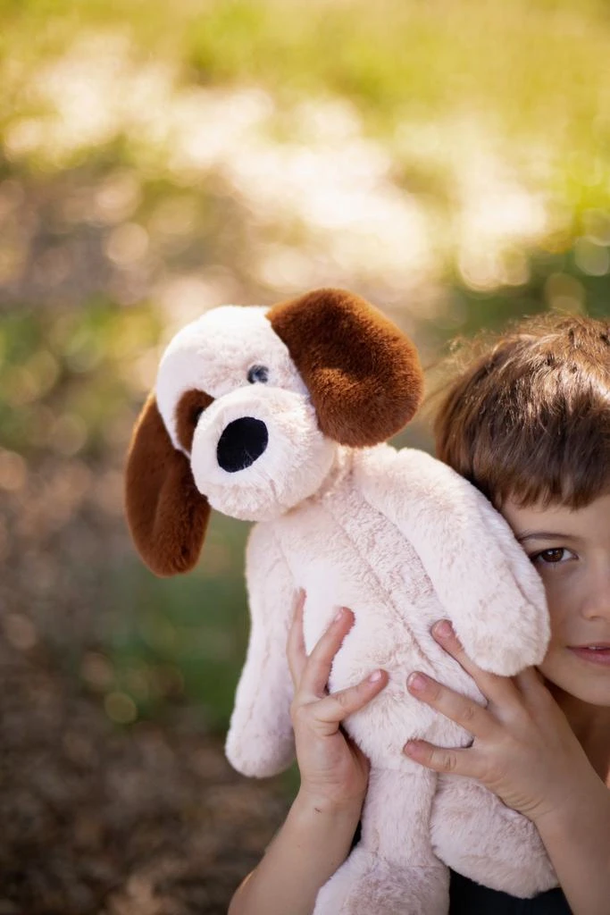 Tento roztomilý strakatý plyšový psík je ideálnym spoločníkom pre všetkých milovníkov zvierat.
