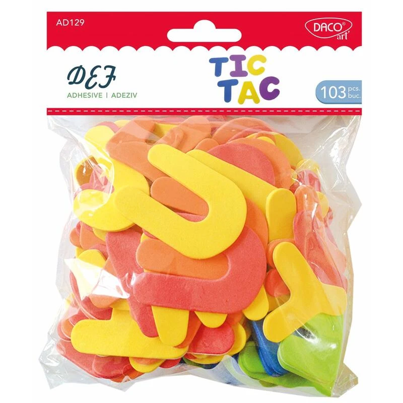 Farebná penová samolepiaca abeceda obsahuje 103 písmen v rôznych veľkostiach.