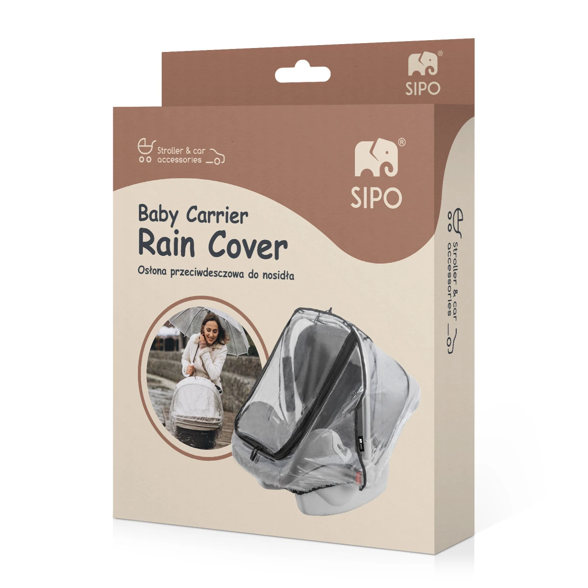 Pláštenka SIPO je navrhnutá tak, aby poskytovala úplnú ochranu dieťaťu prepravovanému v nosiči alebo autosedačke.
