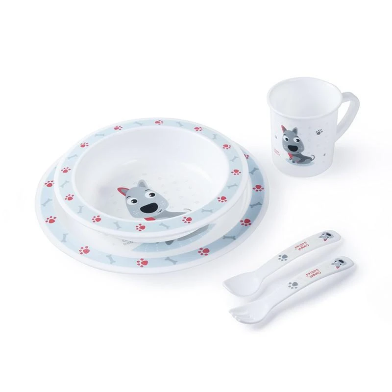 Plastová sada riadu Canpol HAPPY ANIMALS MODRÝ - PSÍK NEW