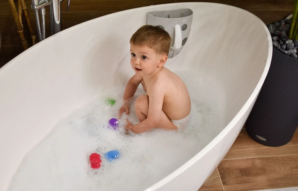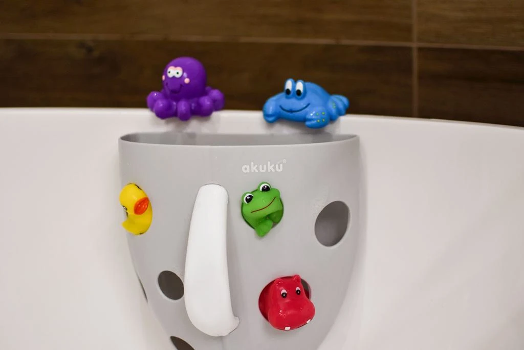 Plastový box na hračky do vane s úchytom a prísavkou na uchytenie.
