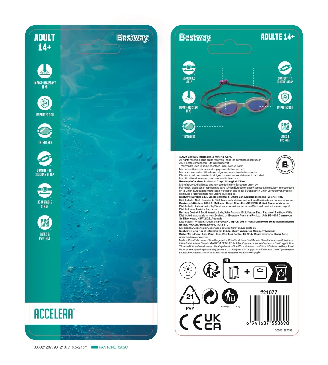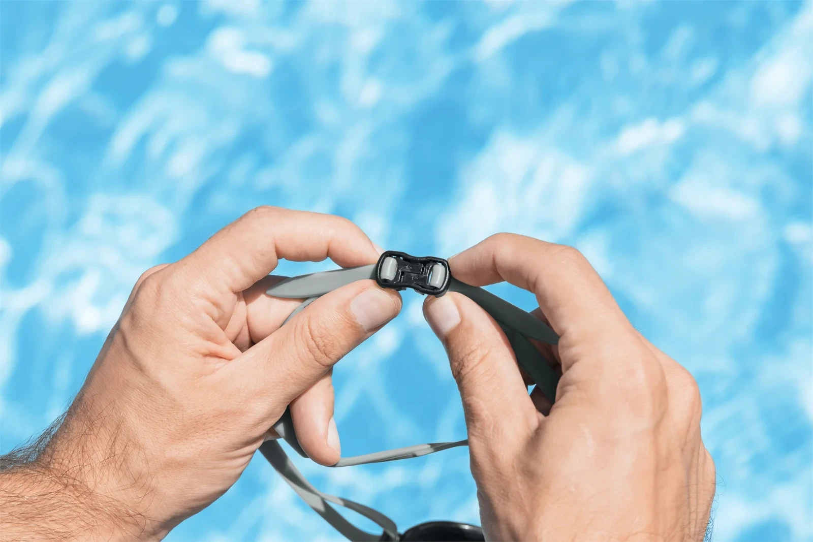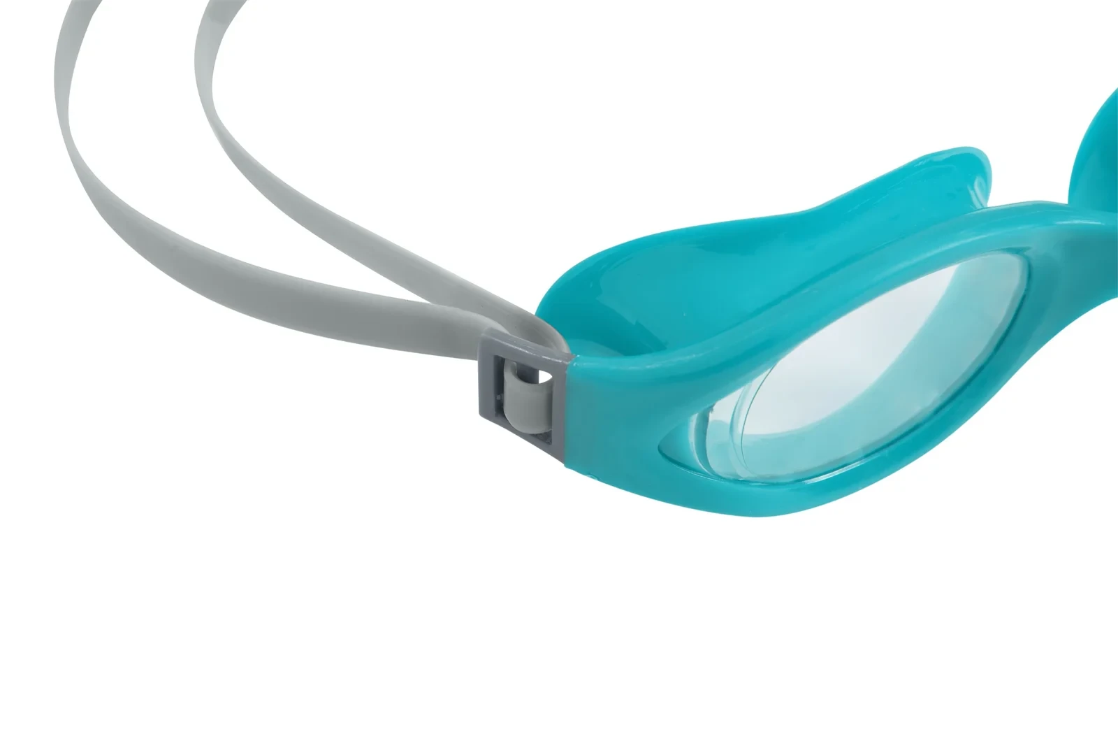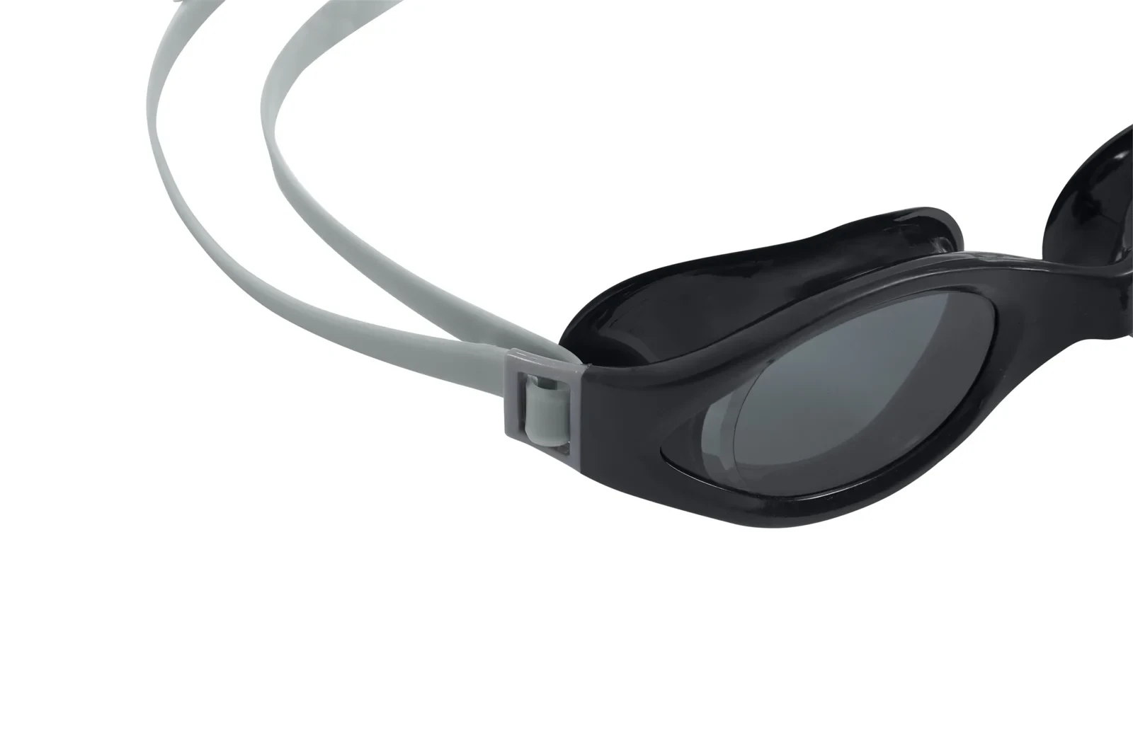 Zafarbené polykarbonátové šošovky s UV ochranou chránia oči pred slnečným žiarením a špeciálna úprava proti zahmlievaniu zaisťuje jasný výhľad pod vodou. Nastaviteľný silikónový pásik umožňuje ľahké prispôsobenie veľkosti.