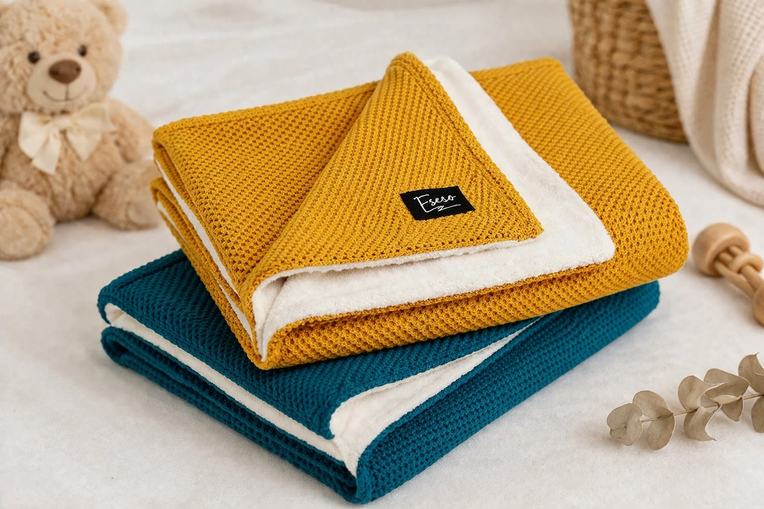 Táto deka ESECO je ideálnou voľbou pre rodičov, ktorí hľadajú kvalitnú, štýlovú a hrejivú deku pre svoje bábätko s dôrazom na bezpečnosť a design.