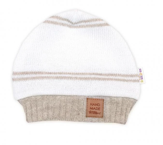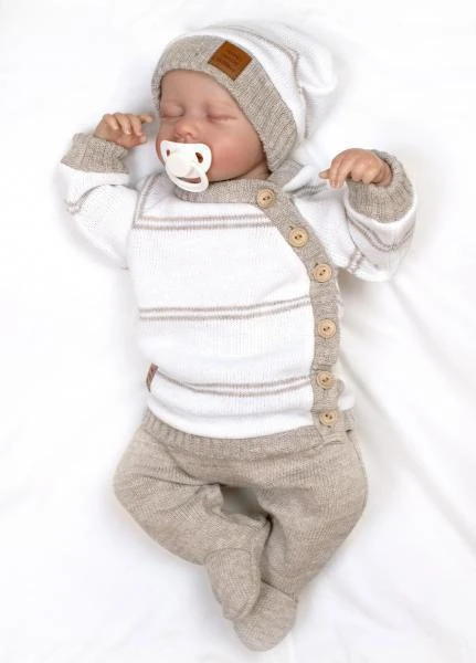 Pletená sada pre bábätko s jemným prúžkom 3dielna lux béžová - biela Baby Nellys
