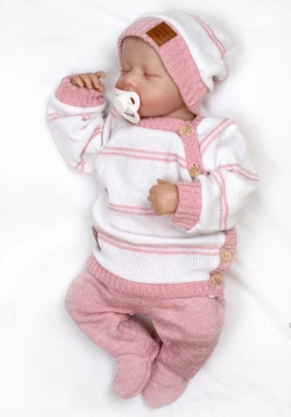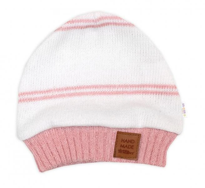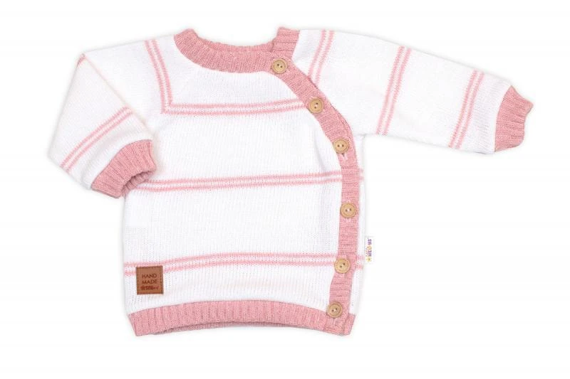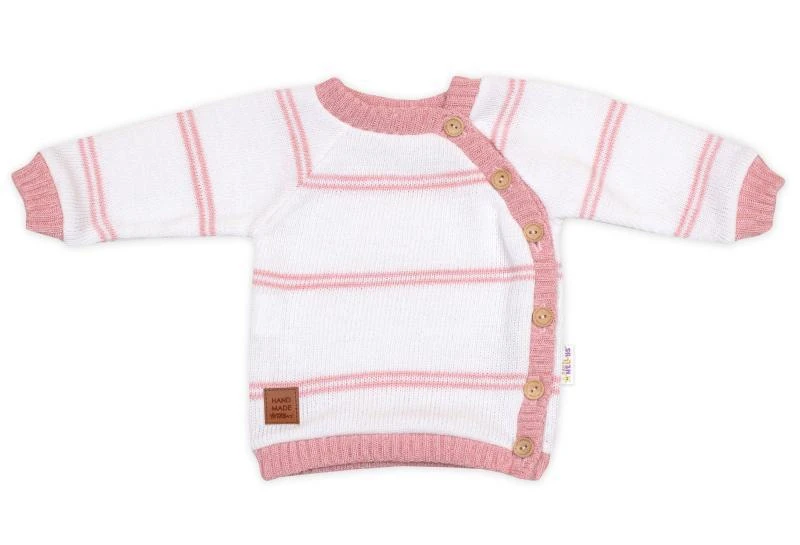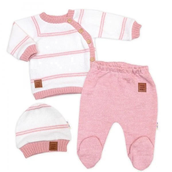 Pletená sada pre bábätko s jemným prúžkom 3dielna lux ružová - biela Baby Nellys
