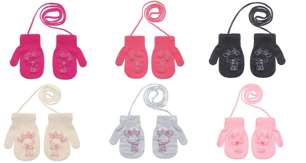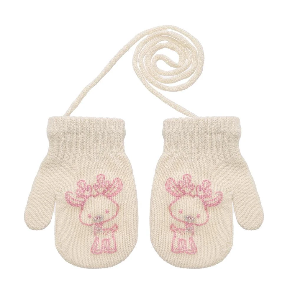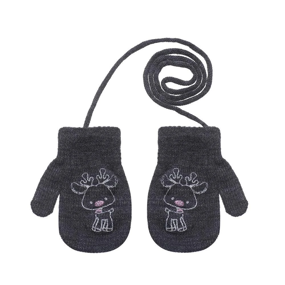 Pletené zimné rukavice so šnúrkou sobík 9 - 12 mesiacov