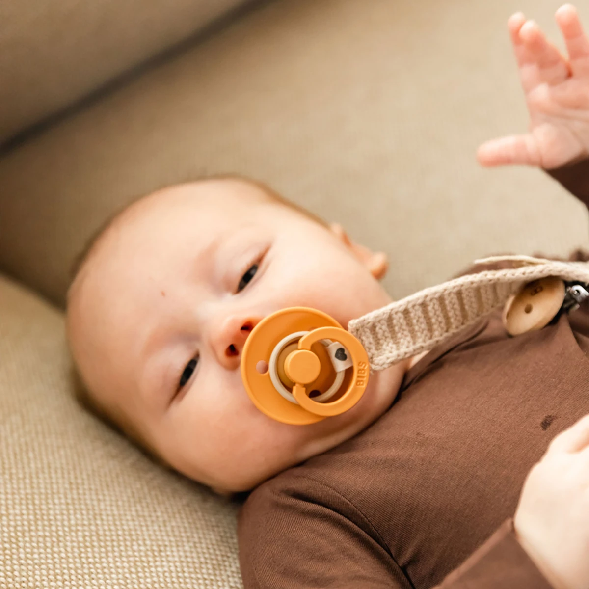 BIBS pletený klip na cumlík je designový a praktický doplnok, ktorý udrží cumlík vždy po ruke a čistý vďaka kvalitnému pletenému prevedeniu z organickej bavlny.