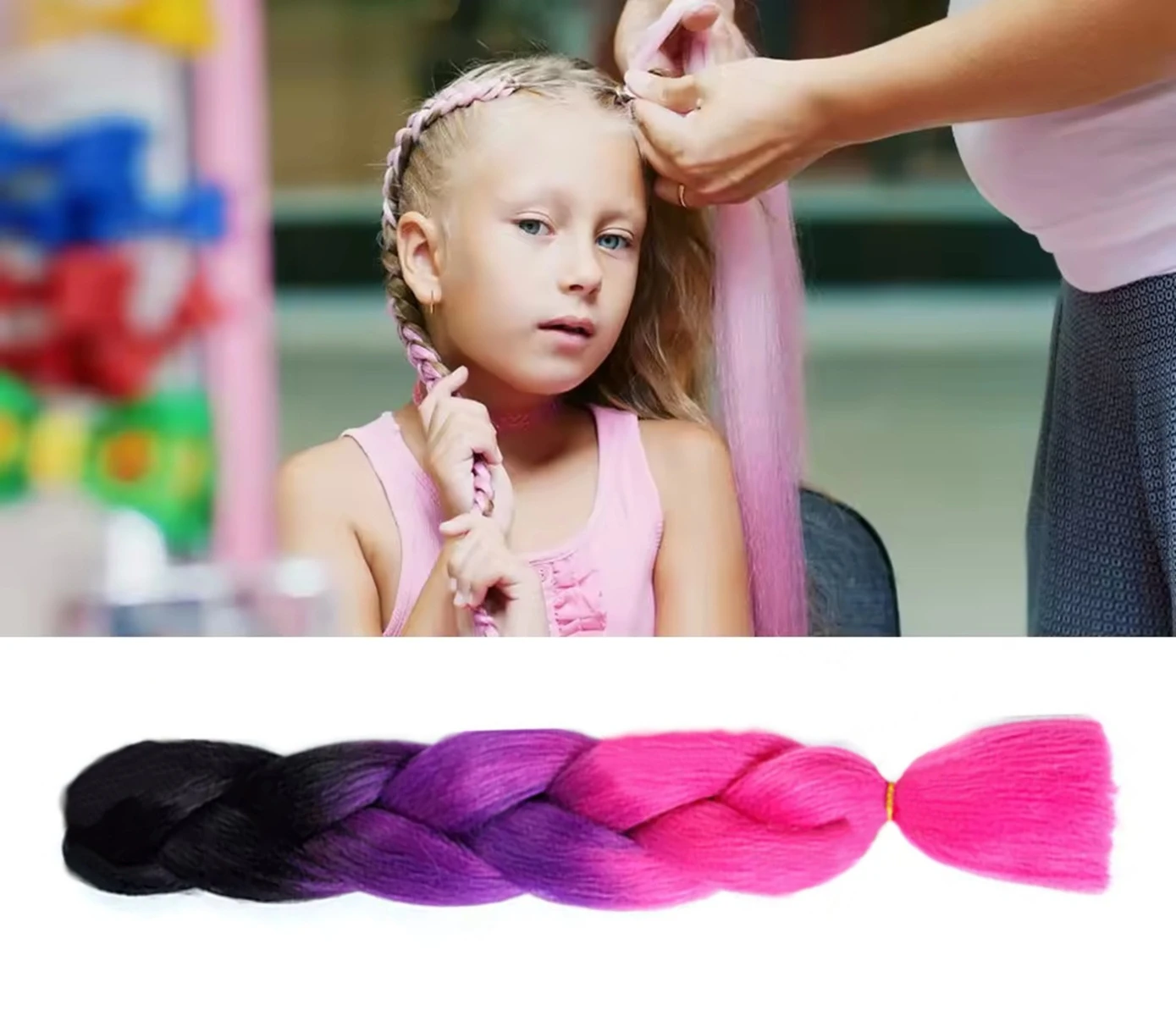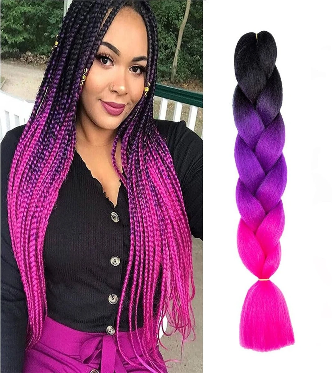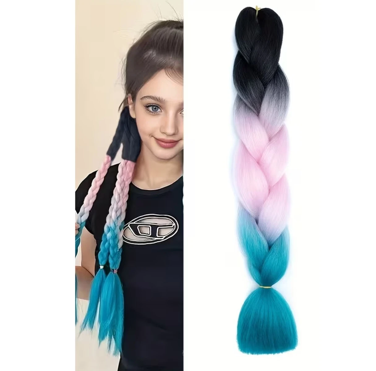 Pletený vrkôčik Jumbo 60 cm je štýlový doplnok, ktorý očarí výraznou farebnou kombináciou a veľkým objemom. Vďaka plynulému prechodu odtieňov od čiernej cez ružovú až po tyrkysovú vytvára jedinečný ombrý efekt, ktorý zaujme na prvý pohľad.