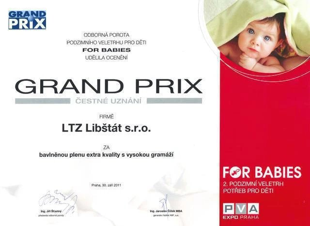 Vďaka vysokej kvalite získali tieto plienky prestížne ocenenie GRAND PRIX FOR BABIES 2011 av roku 2012 titul Štvorcová plienka roka, čo potvrdzuje ich výnimočné vlastnosti a obľúbenosť medzi rodičmi.