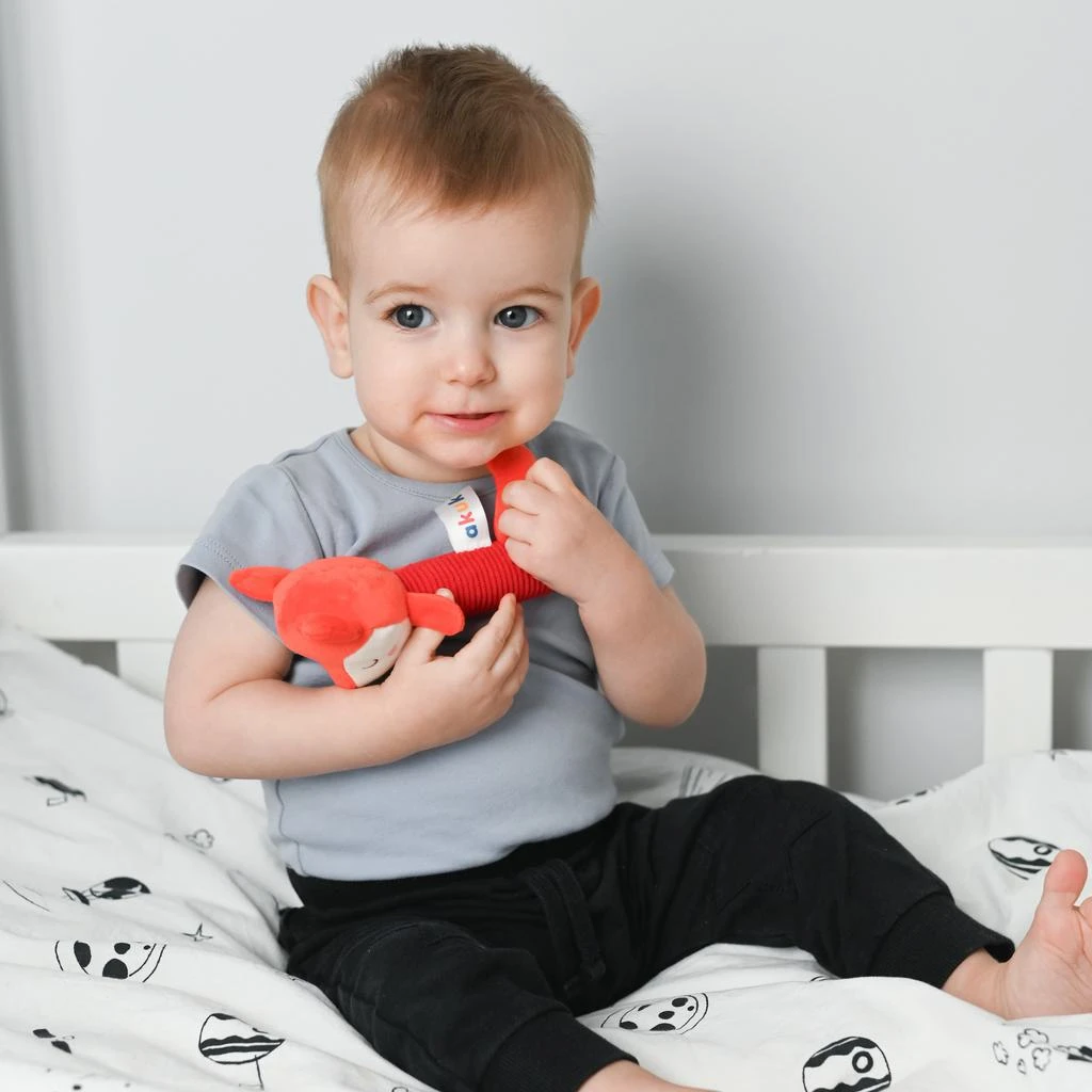Roztomilá plyšová líška je vyrobená z mäkkého a príjemného materiálu s rôznymi textúrami, ktoré podnecujú zvedavosť dieťaťa. Interaktívne prvky – hrkálka, pískatko a šuštiace časti – podporujú rozvoj zraku, sluchu i motorickej koordinácie. Hračka sa po stlačení ozve zvukom a ukrýva drobné prekvapenia, ktoré zabavia bábätko na dlhú dobu.